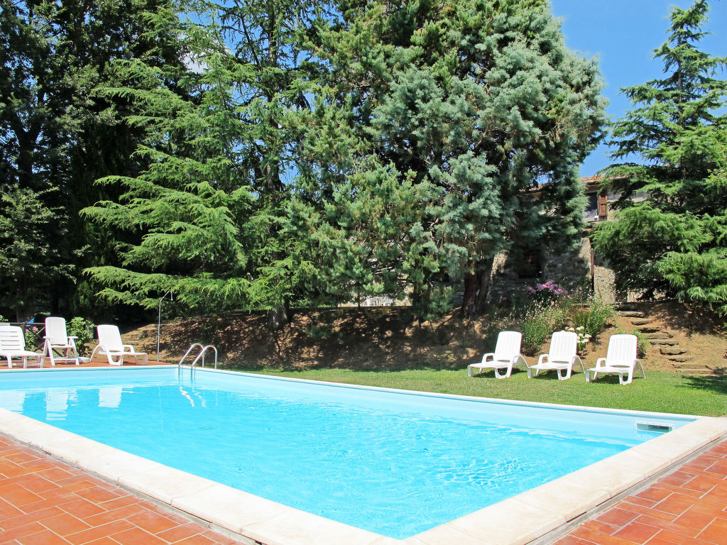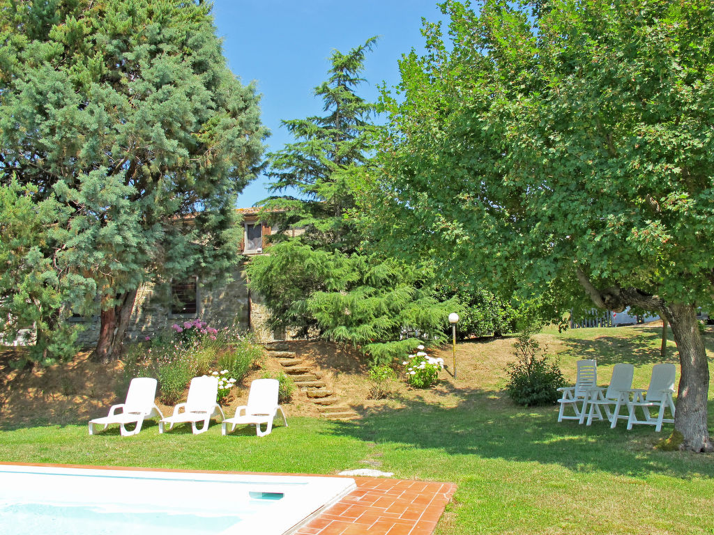 Landsitz "La Cascina degli Alberi". 5 Wohnungen in der Residenz. 1 km vom Zentrum von Lisciano Niccone, 2 km vom Zentrum von Mercatale di Cortona, am Hang, 15 km vom See. Zur Mitbenutzung: Grundstück 2'000 m2 mit Rasen und Bäumen, Liegewiese, Schwimmbad (10 x 5 m, saisonale Verfügbarkeit: 18.Mai.-28.Sep.). Aussendusche, Grill, Kinderspielplatz. Im Hause: Waschmaschine (zur Mitbenutzung, extra). Parkplatz auf dem Grundstück. Supermarkt 1 km, Bahnstation "Terontola" 20 km. Golfplatz 15 km.