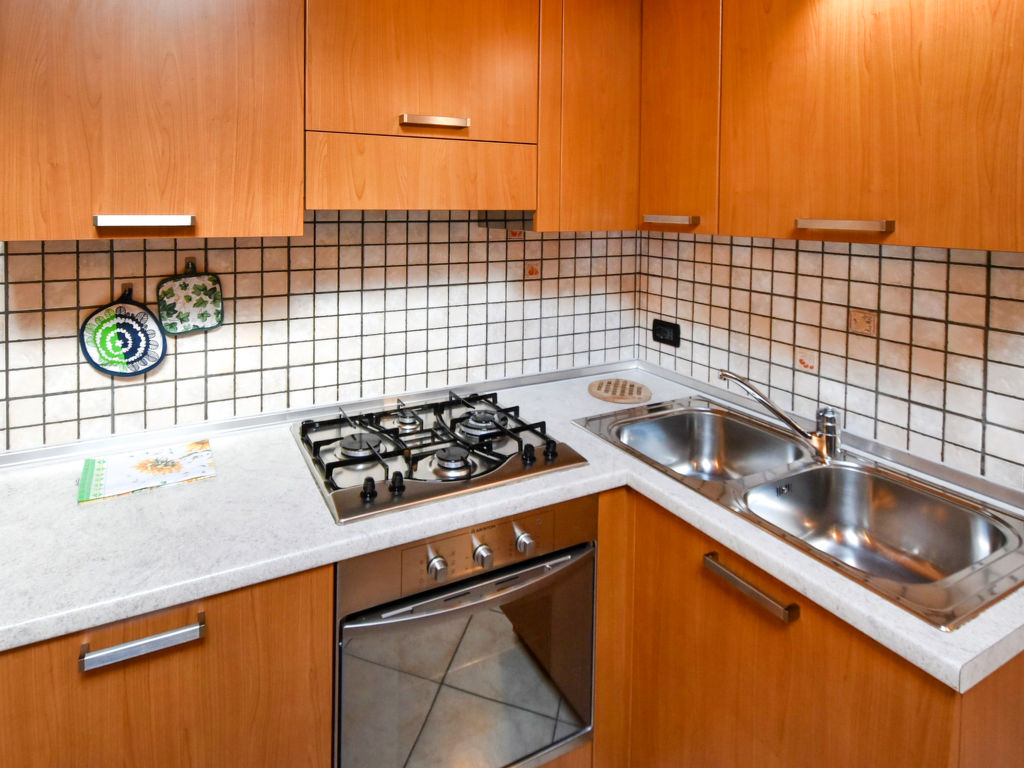 3-Zimmer-Wohnung 41 m2 im 2. Stock. Teilweise abgeschrägt, zweckmässig und komfortabel eingerichtet: abgeschrägtes Wohn-/Esszimmer mit Essecke und TV. 1 abgeschrägtes Doppelzimmer. 1 abgeschrägtes Zimmer mit 1 x 2 Etagenbetten. Ausgang zum Balkon. Offene Küche (Backofen, 4 Flammen, Tiefkühler). Dusche/Bidet/WC. Ölheizung. Balkon. Zur Verfügung: Internet (Wireless LAN, gratis). Bitte beachten: Nichtraucher-Haus. Maximal 3 Haustiere/Hunde erlaubt. CIR: 014071-CIM-00023