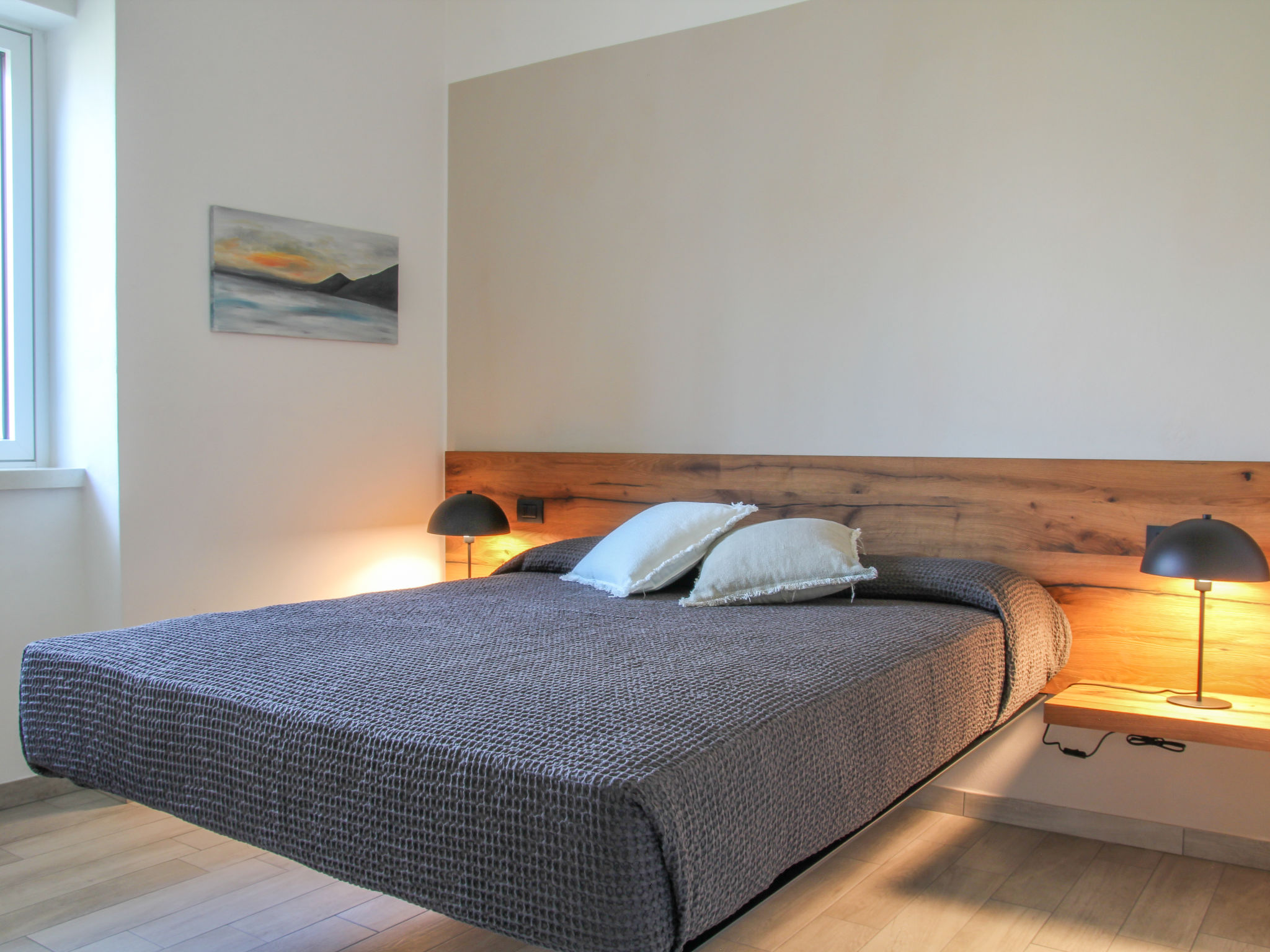 "La Maison Blanche (BRZ155)", 2-Zimmer-Wohnung 45 m2, im Erdgeschoss. Renoviert im Jahre 2016, modern eingerichtet: Wohn-/Esszimmer mit Esstisch, TV und Klimaanlage. Ausgang zum Balkon. 1 Zimmer mit 1 franz. Bett (180 cm), Klimaanlage. Offene Küche (Backofen, Gasherd, 4 Flammen, Toaster, Wasserkocher, Tiefkühler, elektrische Kaffeemaschine). Dusche/WC. Fussbodenheizung. Balkon. Balkonmöbel. Schöne Sicht auf den See. Zur Verfügung: Internet (Wireless LAN, gratis). Bitte beachten: Nichtraucher-Unterkunft. Eigener Eingang. CIR: M0230140159