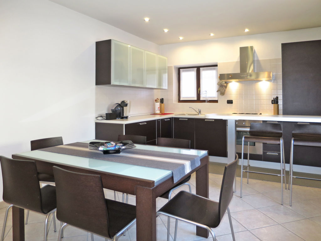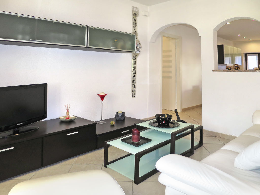2-Zimmer-Wohnung, Erdgeschoss, ca. 60 m². Separater Zugang. Wohnraum mit Sitzgruppe, durch offenen Rundbogen in Küche (4 Flammen, Backofen, Geschirrspüler, Kühl-/Gefrierkombination, Kaffeemaschine, Kaffeepadmaschine, Wasserkocher, Toaster) mit Theke/Barhockern und Essplatz. Schlafzimmer mit franz. Bett (1,60 m breit). Dusche/WC. CIR: 013047-CNI-00002