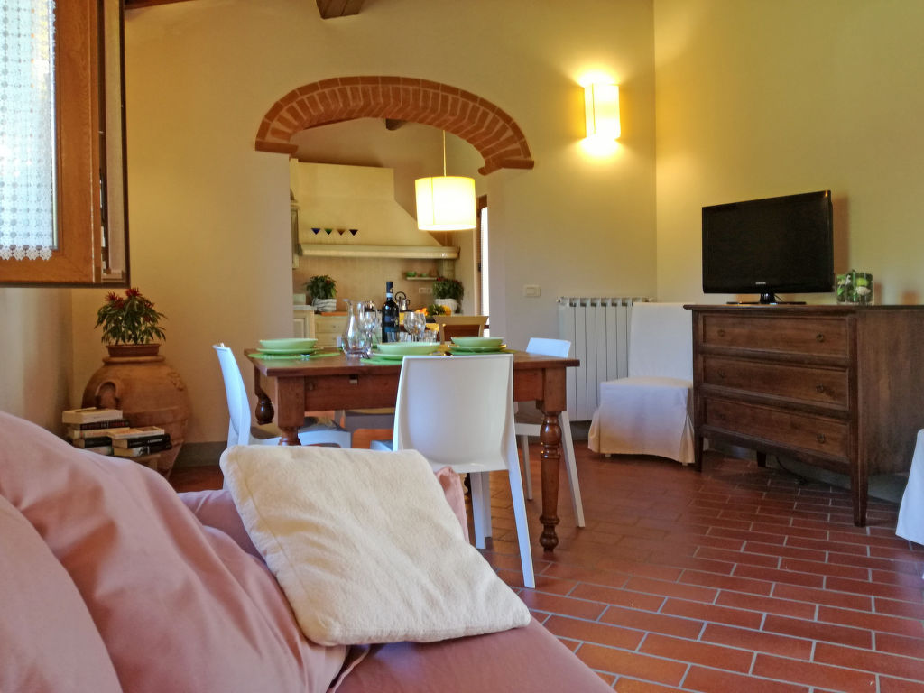 Komfortables Haus "Frappi", renoviert im Jahre 2017. 2 km vom Zentrum von Castiglion Fiorentino, 10 km vom Zentrum von Cortona, 17 km vom Zentrum von Arezzo, 23 km vom See. Zur Alleinbenutzung: Grundstück 1'300 m2 mit Rasen und Bäumen, Aufstellpool (8 x 4 m, 01.05.-30.09.). Aussendusche, Terrasse (30 m2), Gartenmöbel. Abstellraum vorhanden. Parkplatz (für 2 Autos) auf dem Grundstück. Einkaufsgeschäft 2 km, Supermarkt 2 km, Bahnstation "Castiglion Fiorentino" 3 km, Freibad 3 km, Badesee "Tuoro/Lago Trasimeno" 23 km. Golfplatz (9 Loch) 21 km, Tennis 3 km. Nahe gelegene Sehenswürdigkeiten: Castello di Montecchio 3 km.