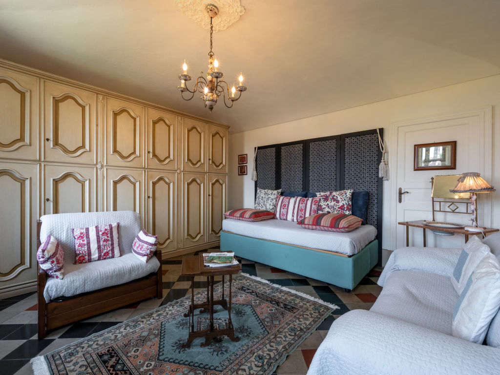 "Il Cortile (SLI150)", 3-Zimmer-Wohnung 100 m2 im 1. Stock. Geschmackvoll und mit viel Holz eingerichtet: Obergeschoss: Wohn-/Schlafzimmer mit 1 Bett, TV und Radio. 2 Zimmer, jedes Zimmer mit 1 Doppelbett. Küche (Backofen, 4 Flammen, Toaster, Wasserkocher, Tiefkühler, elektrische Kaffeemaschine) mit Esstisch. Bad/WC. G-Heizung. Natursteinböden. Balkon, Gartensitzplatz. Terrassenmöbel, Balkonmöbel, Gartengrill (mobil), Liegestühle (2). Panoramasicht auf die Landschaft. Zur Verfügung: Waschmaschine, Kinderhochstuhl, Babybett. Internet (Wireless LAN, gratis). Bitte beachten: Nichtraucher-Unterkunft. Maximal 1 kleines Haustier/Hund erlaubt. Eigener Eingang.