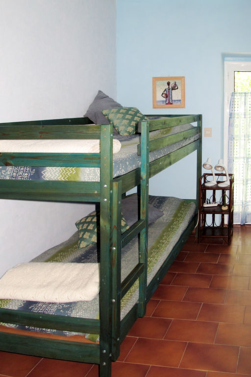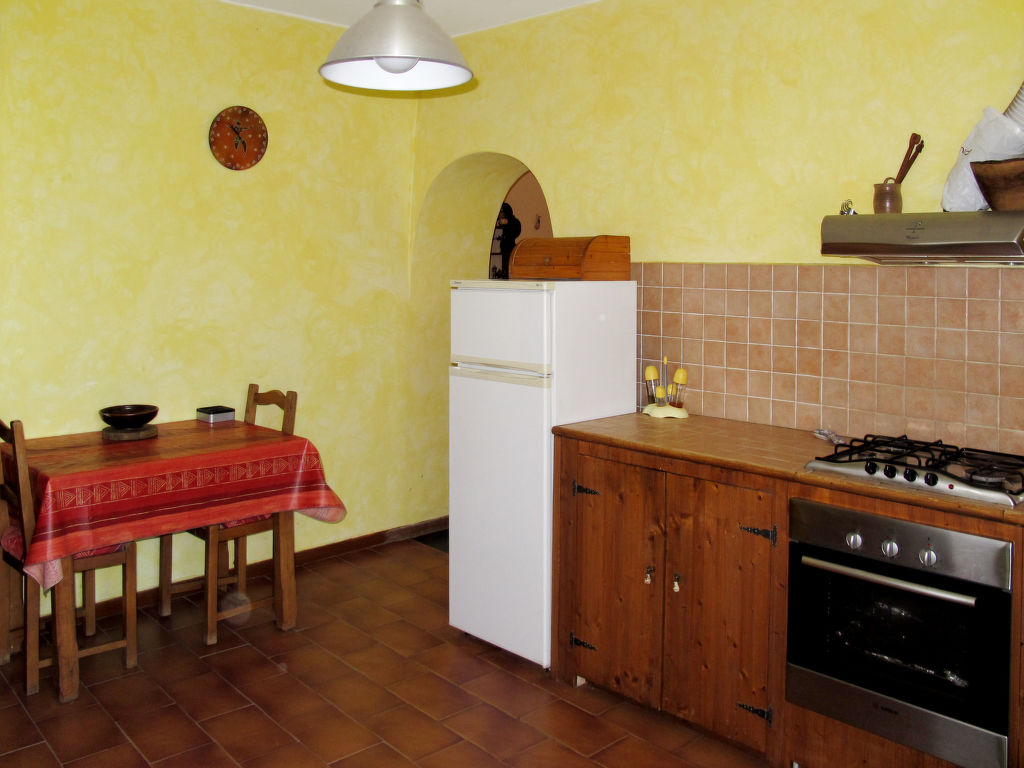 "Carpe Diem (AUO100)", 3-Zimmer-Haus 70 m2. Rustikal eingerichtet: Wohn-/Schlafzimmer mit 1 Diwanbett (140 cm), Esstisch, TV und DVD. 1 Zimmer mit 1 Doppelbett (160 cm). 1 Zimmer mit 1 x 2 Etagenbetten (80 cm). Ausgang zum Balkon. Offene Küche (1 Kochplatte, Backofen, 3 Flammen, Toaster, Wasserkocher, Tiefkühler, elektrische Kaffeemaschine) mit offenem Kamin. Bad/Bidet/WC. Balkon, Terrasse, Gartensitzplatz. Terrassenmöbel, Balkonmöbel, Liegestühle (6). Schöne Fernsicht auf die Berge, das Tal und die Landschaft. Zur Verfügung: Waschmaschine, Bügeleisen. Internet (Wireless LAN, gratis). Maximal 3 Haustiere/Hunde erlaubt. CITRA: 008005-LT-0004