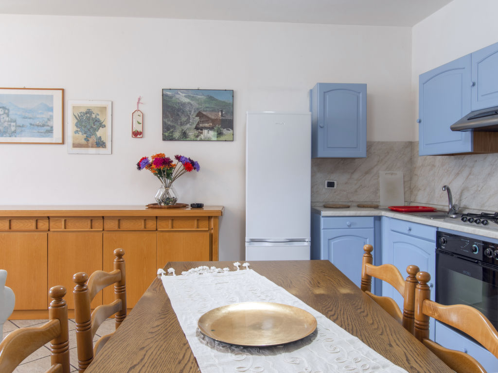"Casa Bel Sit (AQS200)", 3-Zimmer-Wohnung 65 m2, im erhöhten Erdgeschoss, Ostlage. Zweckmässig und gemütlich eingerichtet: Wohn-/Esszimmer mit offenem Kamin, Esstisch und Sat-TV. Ausgang zum Balkon. 1 Zimmer mit 1 Doppelbett. Ausgang zum Balkon. 1 Zimmer mit 2 Betten. Offene Küche (Backofen, 4 Flammen, Toaster, Mikrowelle, Tiefkühler, elektrische Kaffeemaschine). Dusche/WC. G-Heizung (extra). Grosser Balkon, Laube. Terrassenmöbel, Balkonmöbel. Herrliche Panoramasicht auf den See und die Berge. Zur Verfügung: Waschmaschine, Kinderhochstuhl, Babybett bis 2 Jahre. Internet (Wireless LAN, gratis). Bitte beachten: Nichtraucher-Unterkunft. Eigener Eingang. CIR: 013248-CNI-00033