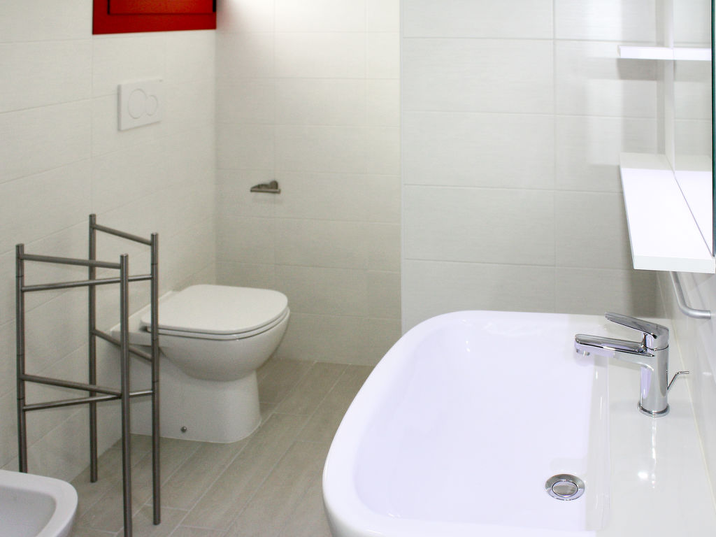 4-Zimmer-Reihenhaus, 3 Etagen, ca. 75 m². Wohn-/Schlafraum mit Doppelbettcouch und Essplatz. Kleine Küche (4 Flammen, Mikrowelle, Kühl-/Gefrierkombination, Kaffeemaschine). Über Wendeltreppe in die 1. Etage: Doppelzimmer mit kleinem Balkon. Zweibettzimmer mit kleinem Balkon. Neue Dusche/WC. Über Wendeltreppe ins Dachgeschoss: Schlafzimmer mit 2 Einzelbetten (auch Einzelbett und Schrankbett möglich). Weitere einfache, neue Dusche/WC mit Zugang von außen vom Autostellplatz.