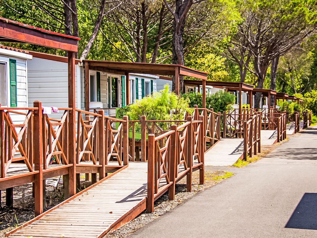 3-Zimmer-Mobilheim 34 m2, im erhöhten Erdgeschoss. Zweckmässig eingerichtet: Wohn-/Esszimmer mit Küchenblock. Ausgang zum Gartensitzplatz. 1 Doppelzimmer mit Dusche/WC. 1 Zimmer mit 2 Betten und 1 Wandklappbett. Dusche/WC. E-Heizung, Klimaanlage. Gartensitzplatz überdacht. Sitzplatz. Zur Verfügung: Safe.
