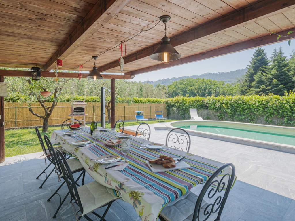 Das Dreifamilienhaus FONTANELLA steht am Ortsrand von Camaiore mit Einkaufsmöglichkeit, 1,5 km von der Ortsmitte entfernt. Supermarkt 3,5 km. Zu den Stränden von Lido di Camaiore 10 km. Elektrisches Einfahrtstor. 1 Parkplatz pro Wohnung auf dem Grundstück. Das Haus mit unseren beiden Ferienwohnungen und der Wohnung des Besitzers steht auf einem ca. 1000 m² großen, teilumzäunten Grundstück mit Rasen, Hecken und Olivenbäumen. Umzäunter Poolbereich mit ovalem Pool (7,4 x 3,7 m, 1,4 m tief, 02.05.-24.09.), überdachter, möblierter Holzterrasse, Liegewiese und 4 Sonnenliegen zur gemeinsamen Nutzung der Gäste. Gemeinsame Sommerküche (4 Flammen, Kühl-/Gefrierkombination), gemauerter Grill. Der Besitzer wohnt im Erdgeschoss mit separatem Zugang und unterhält einen Gemüsegarten auf dem Grundstück. Beide Ferienwohnungen haben jeweils eine überdachte, möblierte Terrasse mit Blick ins Grüne. Der Zugang zur Ferienwohnung CMA 121 erfolgt über die Terrasse von CMA 120. Gepflegte, rustikale Einrichtung. Jeweils Fliesenboden. Sat-TV. Internetzugang (WLAN, inklusive). Waschtrockner (CMA 120) bzw. Waschmaschine (CMA 121). In CMA 120 Pelletkaminofen (einzige Heizmöglichkeit), in CMA 121 Gas-Zentralheizung. Hinweis: Rauchen ist in den Wohnungen nicht gestattet.