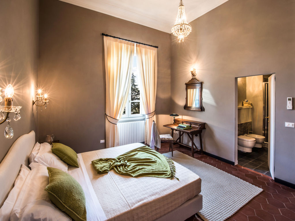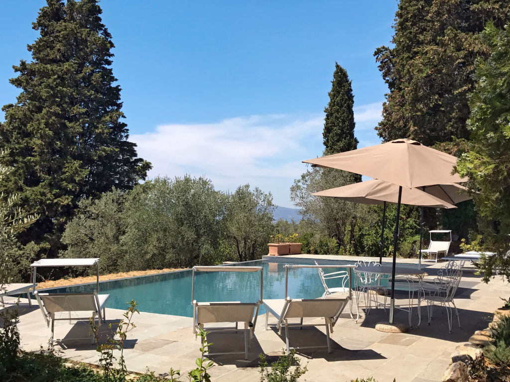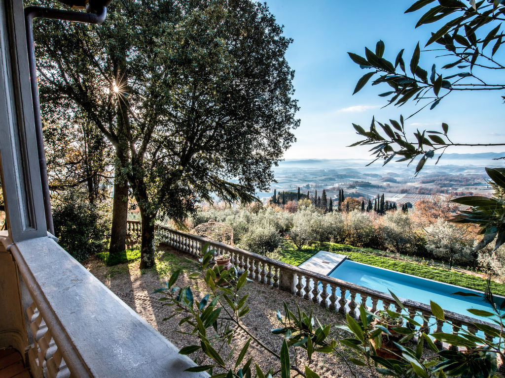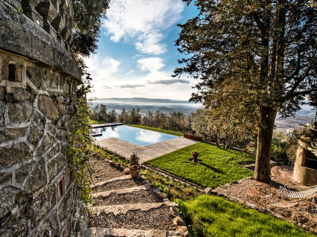 Historische Villa "Villa Belvedere (SGS135)", Baujahr 1800, renoviert im Jahre 2017, umgeben von Bäumen und Feldern. 3.5 km vom Zentrum von San Giustino Valdarno, 15 km vom Zentrum von Terranuova, 22 km vom Zentrum von Arezzo, ruhige Lage, im Grünen. Zur Alleinbenutzung: Grundstück 2 ha (eingezäunt), Park, Terrassengarten Bäumen, Schwimmbad (12 x 7 m, 01.05.-25.09.). Aussendusche, Laube, Terrasse (50 m2), Gartenmöbel. Abstellraum vorhanden. 500 m lange steile Zufahrt (Naturweg). Treppenweg (12 Stufen) bis zum Haus. Parkplatz (für 3 Autos, überdacht) auf dem Grundstück. Einkaufsgeschäft 3.5 km.
