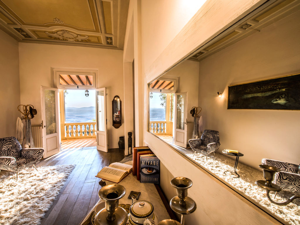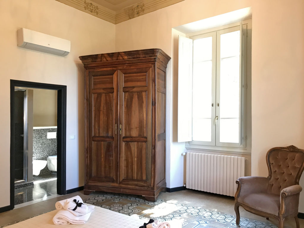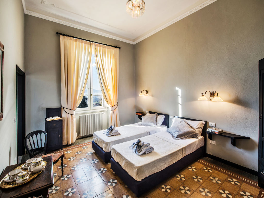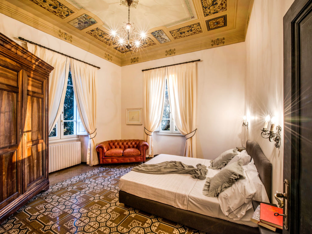 Historische Villa "Villa Belvedere (SGS135)", Baujahr 1800, renoviert im Jahre 2017, umgeben von Bäumen und Feldern. 3.5 km vom Zentrum von San Giustino Valdarno, 15 km vom Zentrum von Terranuova, 22 km vom Zentrum von Arezzo, ruhige Lage, im Grünen. Zur Alleinbenutzung: Grundstück 2 ha (eingezäunt), Park, Terrassengarten Bäumen, Schwimmbad (12 x 7 m, 01.05.-25.09.). Aussendusche, Laube, Terrasse (50 m2), Gartenmöbel. Abstellraum vorhanden. 500 m lange steile Zufahrt (Naturweg). Treppenweg (12 Stufen) bis zum Haus. Parkplatz (für 3 Autos, überdacht) auf dem Grundstück. Einkaufsgeschäft 3.5 km.
