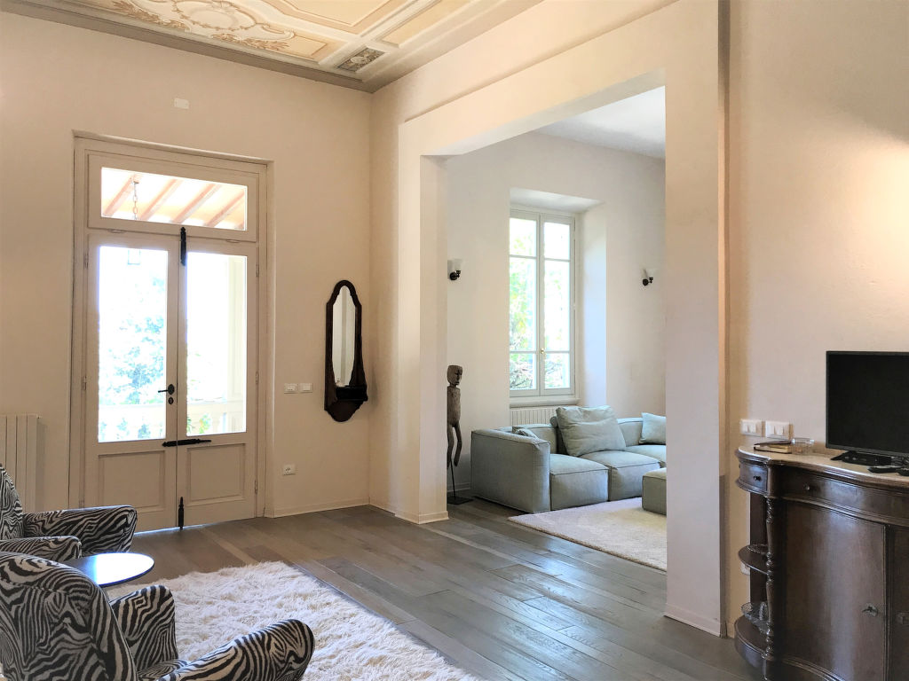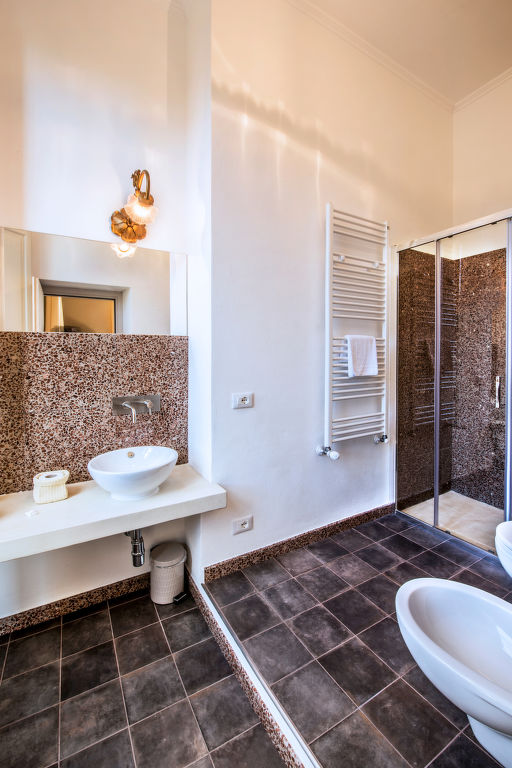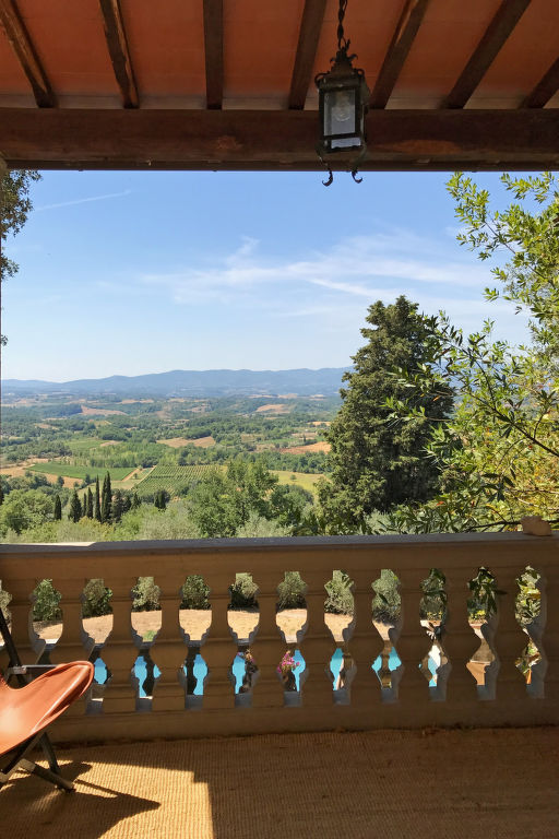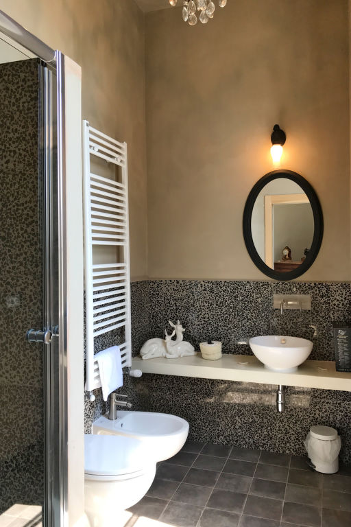 8-Zimmer-Haus 500 m2 auf 2 Stockwerken. Modern und geschmackvoll eingerichtet: Obergeschoss: Wohnzimmer mit offenem Kamin und Sat-TV. Ausgang zum Garten. 2 Zimmer, jedes Zimmer mit 1 franz. Bett (160 cm), Dusche/WC und Klimaanlage. Küche (Backofen, Geschirrspüler, 5 Flammen, Wasserkocher, Mikrowelle, Tiefkühler, elektrische Kaffeemaschine) mit Esstisch. Ausgang zur Terrasse. Sep. WC. G-Heizung. 2. Obergeschoss: 3 Zimmer, jedes Zimmer mit 1 franz. Bett (160 cm), Dusche/WC und Klimaanlage. Durchgangszimmer mit 2 Betten (80 cm), Klimaanlage. 1 Zimmer mit 1 franz. Bett (160 cm), Dusche/WC und Klimaanlage. Holzböden, Natursteinböden. Panoramasicht. Zur Verfügung: Waschmaschine, Safe, Bügeleisen, Babybett. Internet (Wireless LAN, gratis). Bitte beachten: Nichtraucher-Unterkunft. Maximal 1 Haustier/Hund erlaubt.