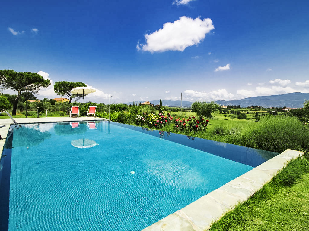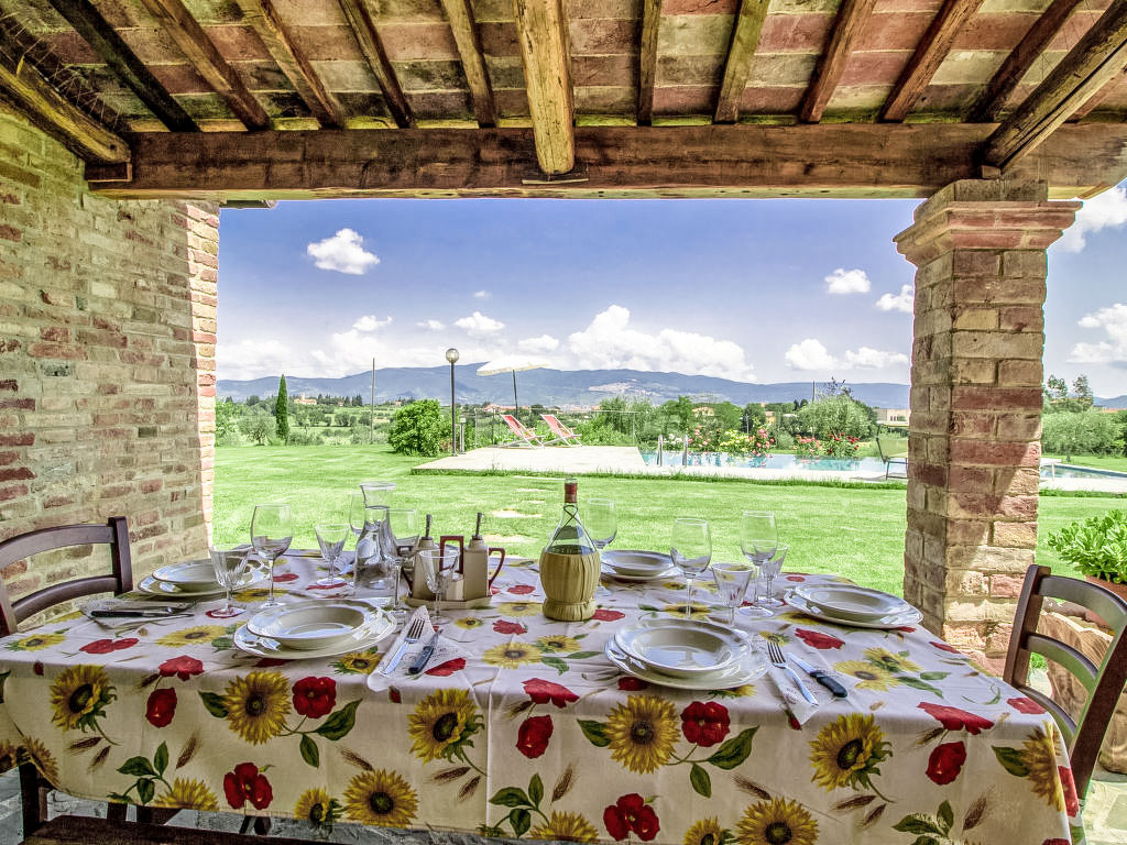 Sehr schöner Landsitz "Il Loto", 230 m.ü.M., einseitig angebaut, umgeben von Feldern. Im Weiler Montecchio Del Loto, 10 km vom Zentrum von Cortona, sonnige Lage. Zur Alleinbenutzung: Grundstück 7'000 m2, wunderschöner Garten zum Entspannen, Schwimmbad (5 x 10 m, 150 cm tief, 15.05.-30.09.). Gartenmöbel, Grill. Im Hause: Wireless LAN. 400 m lange Zufahrt (Naturweg). Parkplatz beim Haus. Lebensmittelgeschäft 900 m, Restaurant 5 km, Bar 800 m, Thermalbad "Chianciano Terme" 34 km, Badesee "Trasimeno" 20 km. Golfplatz (9 Loch) 4 km. Nahe gelegene Sehenswürdigkeiten: Castiglion del Lago 18 km, Passignano Sul Trasimeno 21 km, Montepulciano 25 km, Arezzo 35 km, Perugia 48 km.