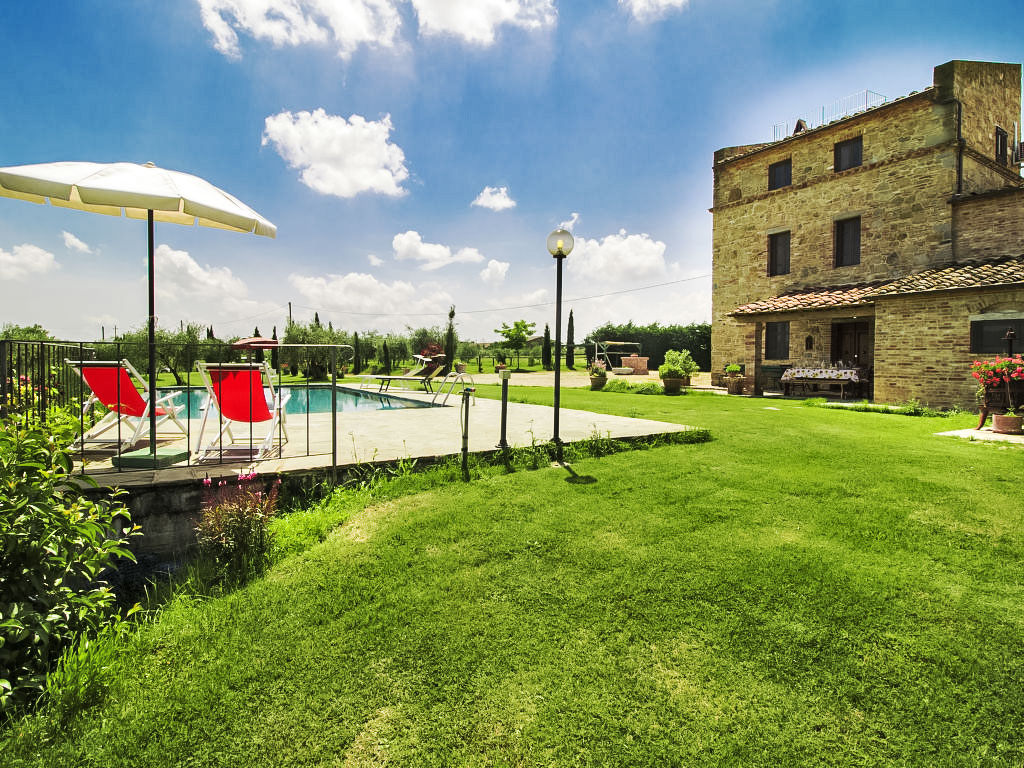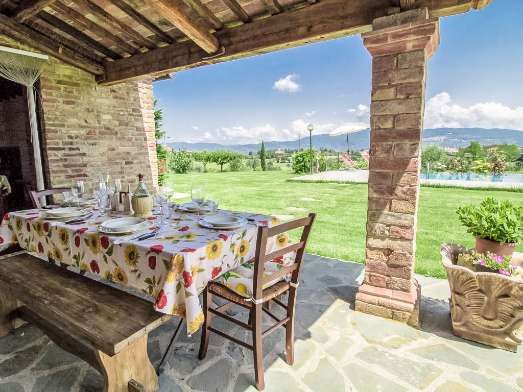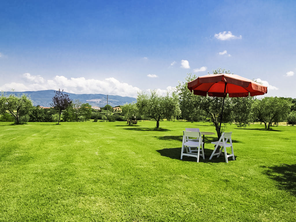 5-Zimmer-Haus 160 m2 auf 3 Stockwerken, im Erdgeschoss. Sehr komfortabel und rustikal eingerichtet: grosses Wohn-/Esszimmer mit offenem Kamin und Sat-TV (Flachbildschirm), CD. Ausgang zum Garten, zur Loggia. 1 kleines Zimmer, ohne Schrank mit 2 Betten. Küche (5 Kochplatten, Backofen, Geschirrspüler, Tiefkühler, elektrische Kaffeemaschine, Pizzaofen) mit Esstisch. Ausgang zur Loggia. Dusche/Bidet/WC. Obergeschoss: 1 Doppelzimmer. 1 Doppelzimmer mit Dusche/Bidet/WC. Dusche/Bidet/WC, Sauna. Ölheizung. Heizung nur verfügbar von 15.10. bis 15.04. 2. Obergeschoss: 1 grosses Zimmer mit 3 Betten, Waschbecken und Klimaanlage. Panoramasicht. Zur Verfügung: Waschmaschine, Fliegengitter, Kinderhochstuhl, Haartrockner. Internet (Wireless LAN). 1 Haustier/Hund erlaubt. Vom Dreibettzimmer führt eine Leiter auf eine Panoramaterrasse mit einem herrlichen Blick auf Cortona.