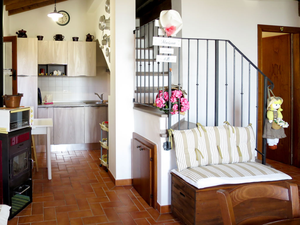 "Casolare Ser Chelino (VOL105)", 3-Zimmer-Haus 60 m2 auf 2 Stockwerken. Renoviert im Jahre 2013, geschmackvoll und gemütlich eingerichtet: Wohn-/Schlafzimmer mit 1 Diwanbett und TV. Küche (Mini-Backofen, Backofen, Geschirrspüler, 4 Flammen, Wasserkocher, Tiefkühler) mit Esstisch, offenem Kamin (nur Deko). Dusche/WC. G-Heizung. Obergeschoss: 1 Zimmer mit 1 Bett (80 cm), 1 Doppelbett (160 cm). 2 Terrassen. Terrassenmöbel, Gartengrill. Sehr schöne Panoramasicht auf die Berge und das Tal. Zur Verfügung: Kinderhochstuhl, Babybett. Internet (Wireless LAN, extra). Bitte beachten: Nichtraucher-Unterkunft. Flexibilität bei der Bettenaufteilung: Es stehen mehr Schlafmöglichkeiten zur Verfügung als die maximal zugelassene Personenzahl, diese darf dennoch nicht überschritten werden.