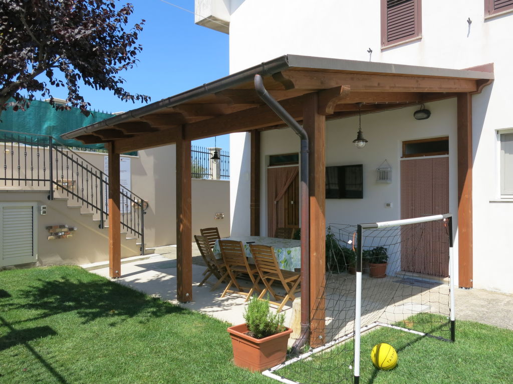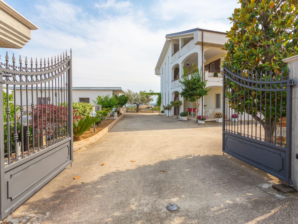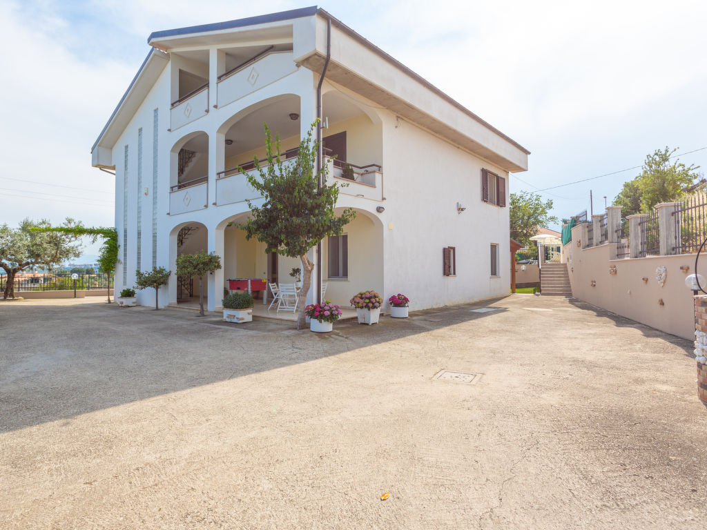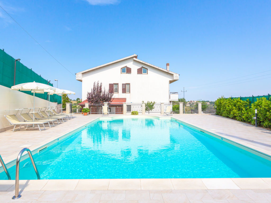 Das 2016 restaurierte Zweifamilienhaus DOLCE VITA steht in sanfter Hügellage zwischen Olivenhainen (Verkauf von Bio-Olivenöl aus eigener Herstellung) 3 km außerhalb von Collecorvino mit Supermarkt. Zu den Sandstränden bei Montesilvano 21 km. Parkmöglichkeiten auf dem Grundstück. Ca. 1500 m² großes, umzäuntes Grundstück mit gepflegtem Garten und gekiestem Hof. Elektrisches Einfahrtstor mit Code. In Panoramalage umzäunter Pool (12 x 6 m, 1-1,90 m tief, 01.05.-30.10., Salzelektrolyse) mit Massagedüsen, Sonnenliegen, Liegestühlen und Sonnenschirmen, zur alleinigen Nutzung der Feriengäste. Außendusche. Wöchentliche Pool- und Grundstückspflege durch den Besitzer, der im 1. Stock wohnt. Zu unserer Ferienwohnung gehört ein ca. 350 m² großer Gartenanteil mit Rasenfläche und überdachter Terrasse sowie ein überdachter Freisitz am Pool. Feriengerechte Einrichtung mit einzelnen Antiquitäten. Fliesenböden. TV. Stereoanlage. Internetzugang (WLAN, inklusive). Waschmaschine. Bügeleisen/-brett. Alarmanlage. Safe. Alle Schlafzimmer mit Fliegengittern, zwei davon mit Klimaanlage. Gas-Zentralheizung. Hinweis: Rauchen ist in der Wohnung nicht gestattet.