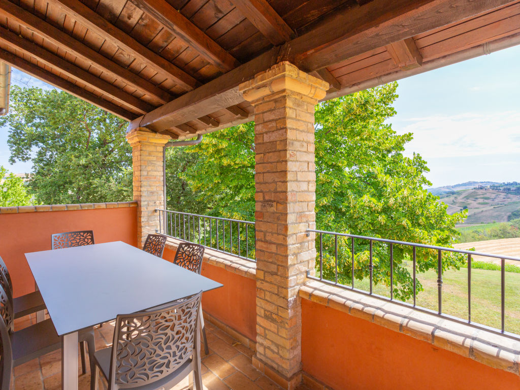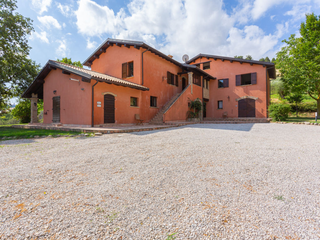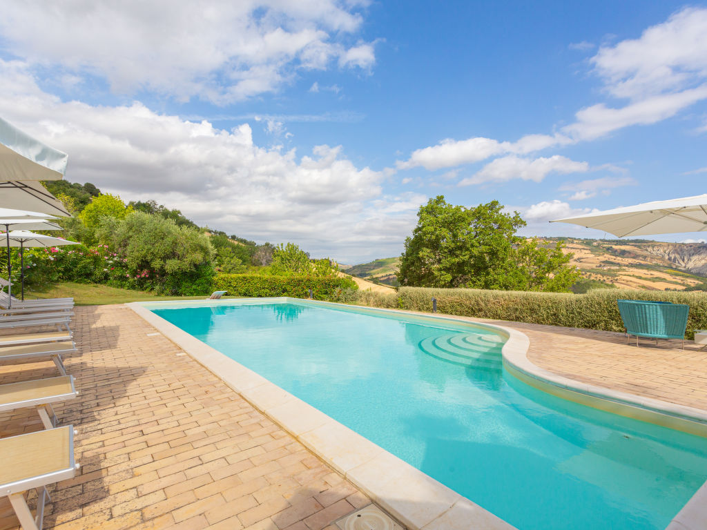 Schönes Landhaus "I Due Carpini", umgeben von Bäumen und Feldern. 3 Wohnungen in der Residenz. 5 km vom Zentrum von Città Sant'Angelo, 25 km vom Zentrum von Pescara, 20 km vom Zentrum von Pineto, alleinstehende Lage am Hang, 12 km vom Meer. Zur Mitbenutzung: Grundstück 2'000 m2, grosser Garten (nicht eingezäunt) mit Pflanzen und Bäumen, Wiese, Obstgarten, Schwimmbad (15 x 6 m, 120 - 250 cm tief, saisonale Verfügbarkeit: 01.Jun.-30.Sep.). Aussendusche, Gartenmöbel, Grill. Im Hause: Waschmaschine (extra). 900 m lange steile, schmale Zufahrt. Im Winter bitte Schneeketten mitbringen, im Winter 4x4 empfohlen. Parkplatz auf dem Grundstück. Supermarkt 3 km, Bahnstation "Pescara" 25 km, Sandstrand "Montesilvano" 12 km. Gelegentlich nutzt der Besitzer den Pool während der Sommermonate.