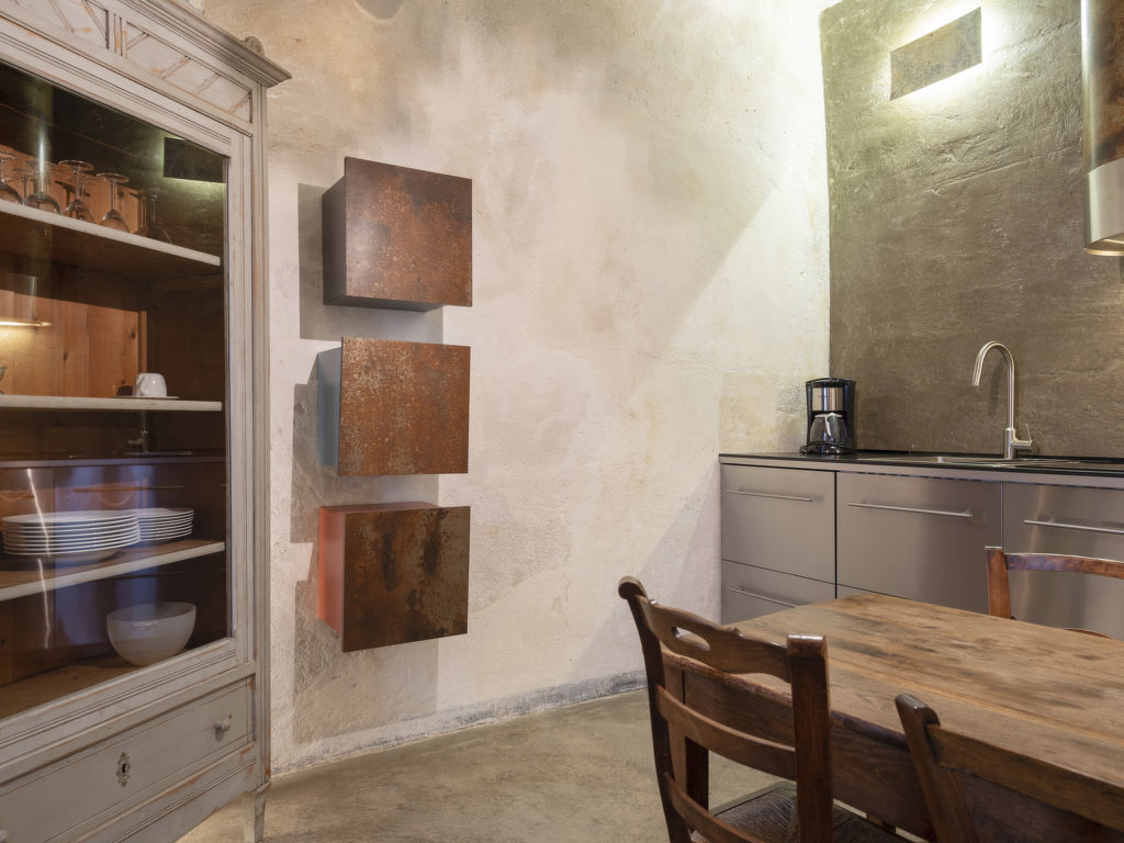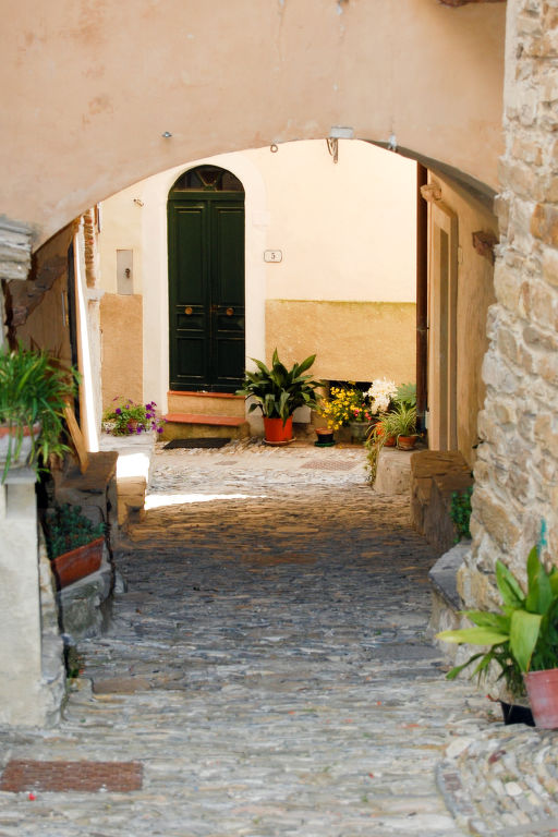 Der Agriturismo TORRE DEI PAPONI, ein verschachteltes, über mehrere Ebenen angelegtes Natursteinhaus aus dem 18. Jhdt., fügt sich perfekt in die eng verwinkelten Gassen und Gewölbegänge des mittelalterlichen Dorfes Torre Paponi ein. Nach San Lorenzo al Mare mit Supermarkt sowie Sand-, Fels- und Kiesstrand 5 bzw. 6 km. Restaurant schräg gegenüber. Schöne Wanderung vom Dorf zu den Naturbadebecken im Flüsschen San Lorenzo (2 km). Parkmöglichkeiten auf den beiden öffentlichen Parkplätzen des Dorfes (ca. 50 bzw. 150 m). Zugang zum Agriturismo über die autofreien Gassen (ca. 50 m). Bei den Besitzern können Olivenöl und Lavendelessenz aus eigener Herstellung gekauft werden. Im romantisch ausgebauten Tonnengewölbe im Erdgeschoss des Hauses organisieren die Besitzer auf Wunsch Wein- und Olivenöldegustationen mit typischen lokalen Produkten (Absprache und Bezahlung am Ort) und zeigen den Gästen ihre Sammlung historischer Olivenvasen. Zu TOP 130 gehört eine kleine Terrasse, TOP 131 mit teilüberdachter Terrasse. Jeweils Mobiliar. Die 2014 restaurierten Ferienwohnungen bestechen durch eine gelungene Kombination aus massiven, mittelalterlichen Bauelementen wie Steinmauern und hohen Treppen und modernen, minimalistischen Designermöbeln eines Piemonteser Architekten. Polierter Betonboden. Sat-TV (deutsche Programme). Internetzugang (WLAN, inklusive). Waschmaschine. Pelletheizung.