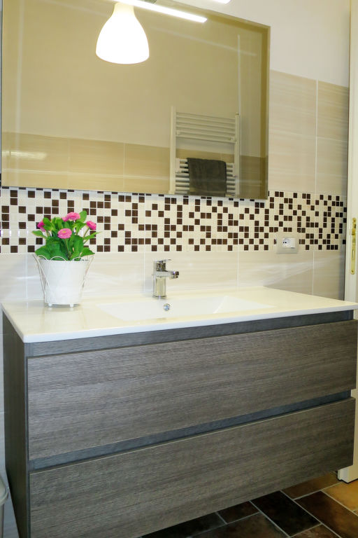 2-Zimmer-Wohnung 50 m2, im Erdgeschoss. Modern eingerichtet: Wohn-/Esszimmer mit Esstisch und Sat-TV. Ausgang zur Terrasse. 1 Zimmer mit 1 x 2 Etagenbetten, 1 franz. Bett (160 cm). Offene Küche (Backofen, Geschirrspüler, 4 Flammen, Tiefkühler, elektrische Kaffeemaschine). Dusche/WC. G-Heizung. Terrasse 24 m2, Garten 200 m2. Terrassenmöbel. Zur Verfügung: Kinderhochstuhl, Babybett. Internet (Wireless LAN, gratis). Parkplatz (1 Auto). Bitte beachten: Nichtraucher-Unterkunft. Maximal 2 Haustiere/Hunde erlaubt. Eigener Eingang.