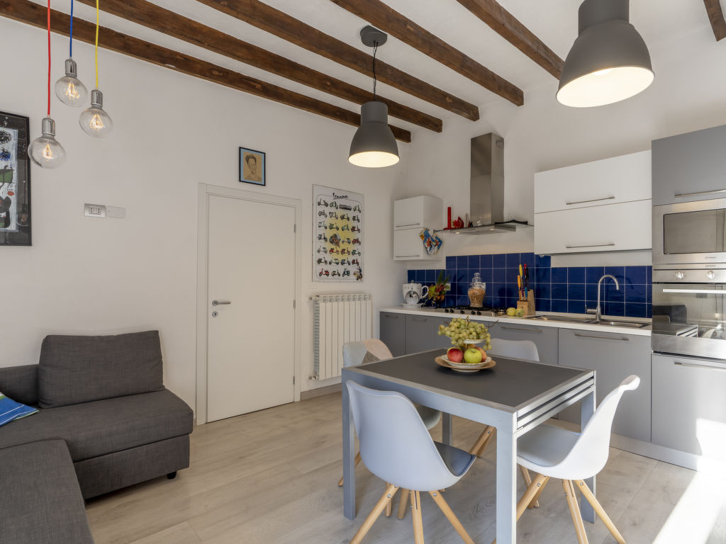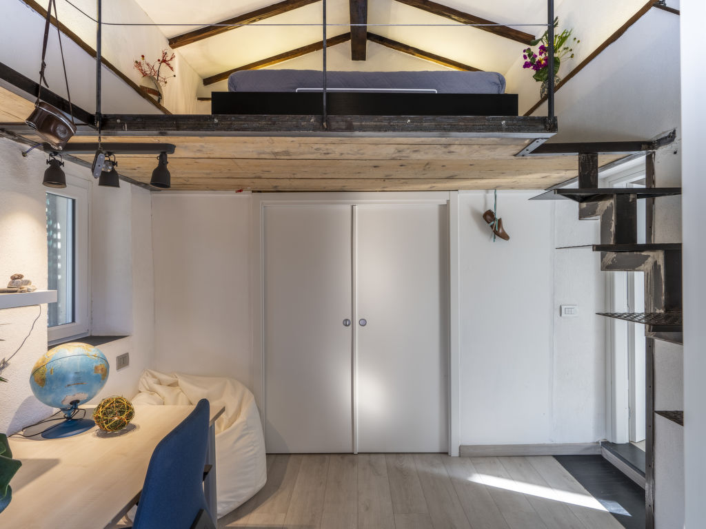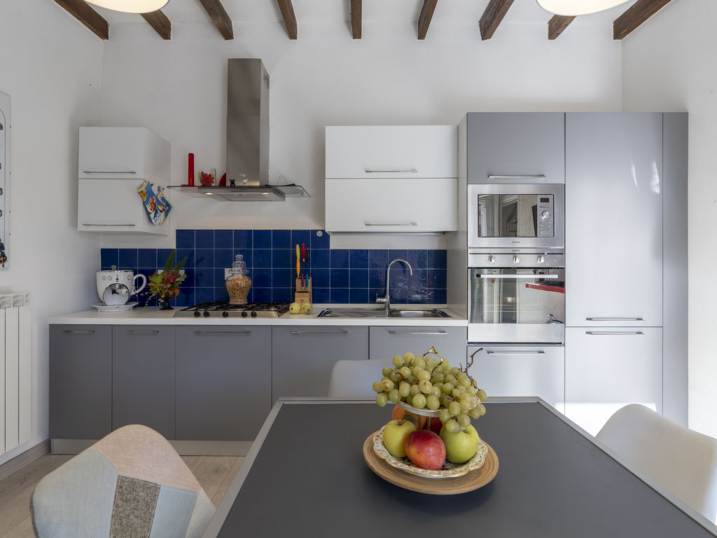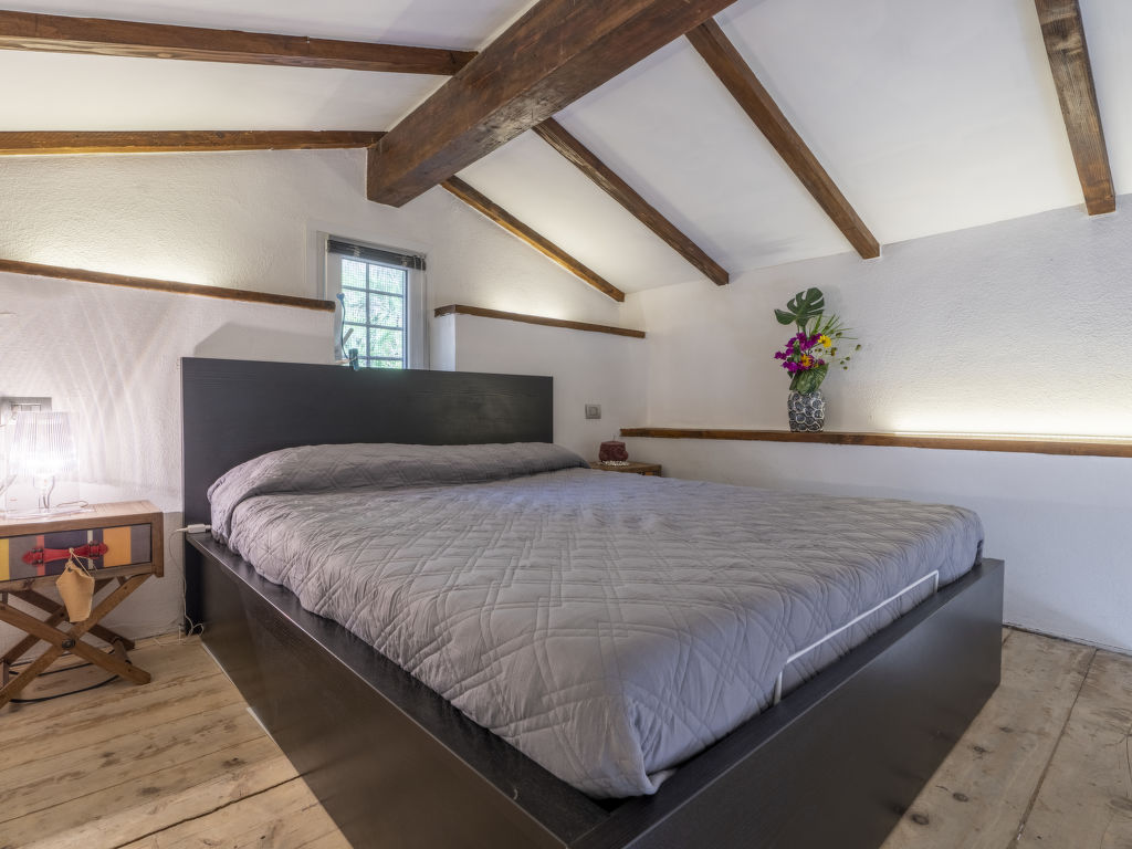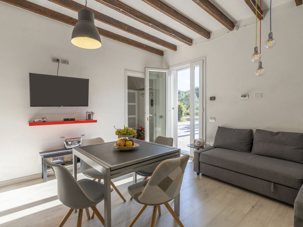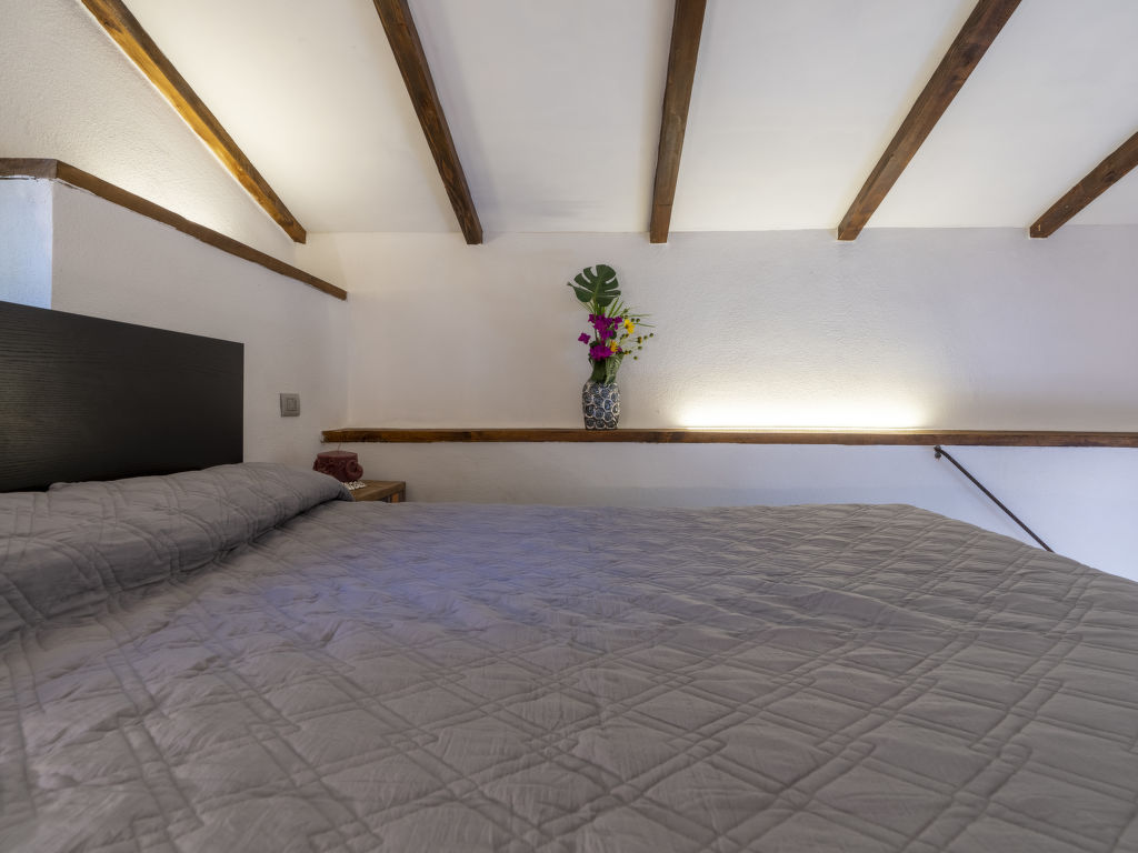 2-Zimmer-Haus, 2 Etagen, ca. 60 m². Wohn-/Schlafraum mit Doppelbettcouch, Essplatz und Küchenzeile (5 Flammen, Backofen, Mikrowelle, Geschirrspüler, Kühl-/Gefrierkombination, Kaffeemaschine, Kaffeekapselmaschine), Terrassenausgang. Schlafzimmer mit franz. Bett (1,60 m breit, auf offener Galerie, zur Galerie schmale Treppe ohne Geländer) und begehbarem Kleiderschrank, Terrassenausgang. Dusche/WC. CITRA: 008022-LT-0049