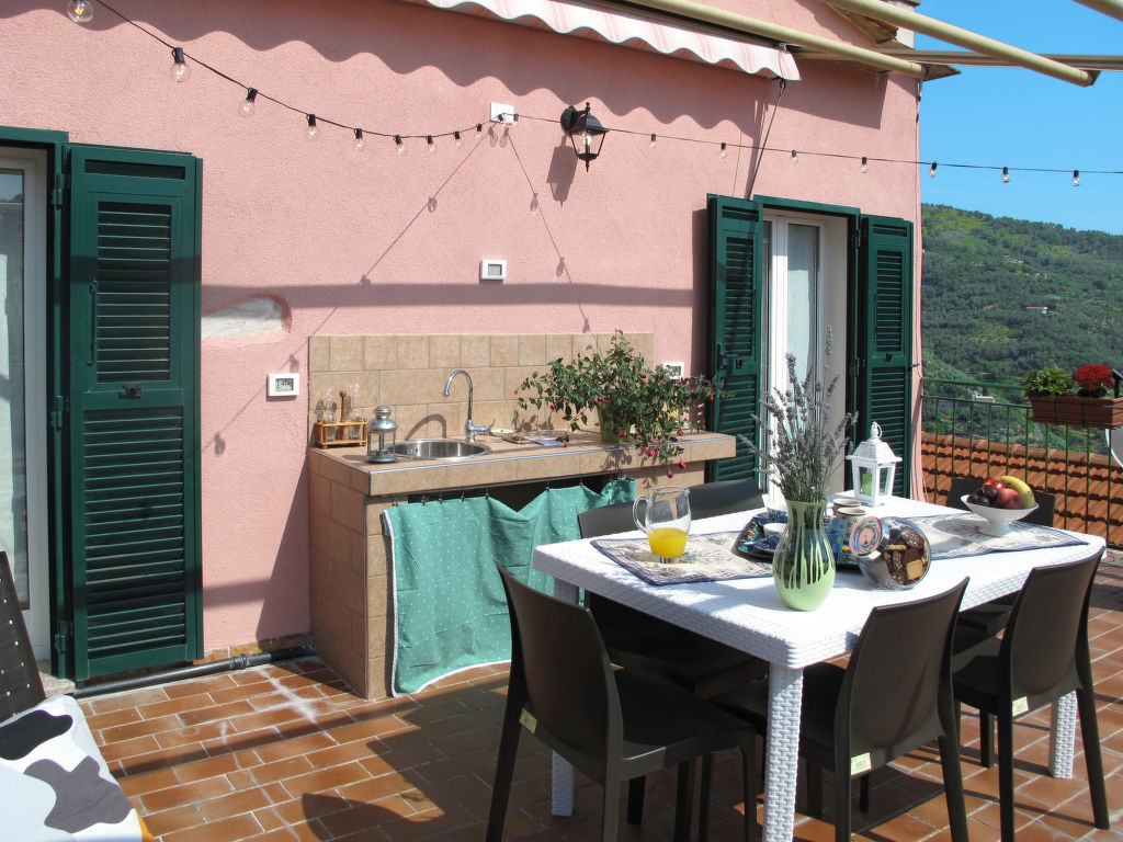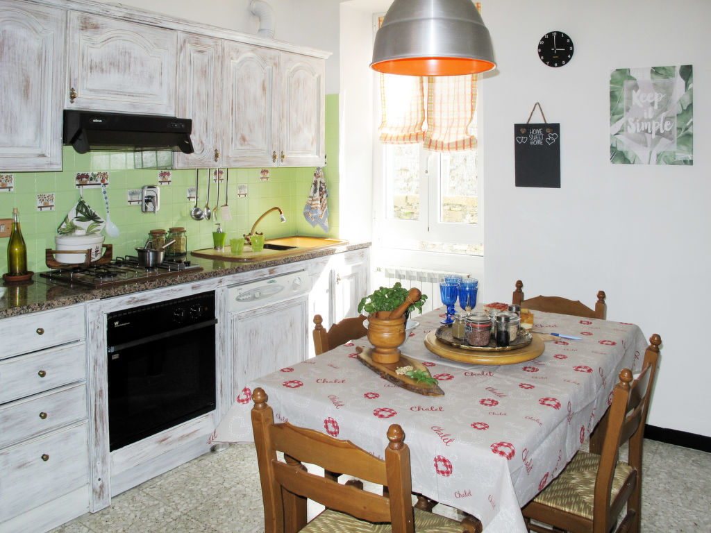 Das Dorfhaus CASA MARIETTA steht inmitten einer verschachtelten Häuserzeile in der Ortsmitte von Boscomare, mit Blick auf den Glockenturm der hübschen Dorfkirche. Nächste Einkaufsmöglichkeit in Pietrabruna (6 km), Supermarkt in San Lorenzo al Mare (10 km). Zum Sand-, Fels- und Kiesstrand von San Lorenzo al Mare 10 km. Parkmöglichkeiten auf öffentlichem Parkplatz (ca. 40 m). Weiterer öffentlicher Parkplatz ca. 80 m. Zugang zum Haus ca. 40 m durch die autofreien Gassen, teils mit Treppenstufen. Zum Haus gehört eine schöne Dachterrasse mit Markise, Mobiliar und Liegestuhl. Sommerküche mit 1 Induktionsfeld und Spülbecken. Transportabler Grill. Das Ferienhaus wurde 2018 renoviert. Gute, feriengerechte Einrichtung. Fliesenboden. Sat-TV (deutsche Programme). Internetzugang (WLAN, inklusive). Waschmaschine. Gas-Zentralheizung. Keine Jugendgruppen.