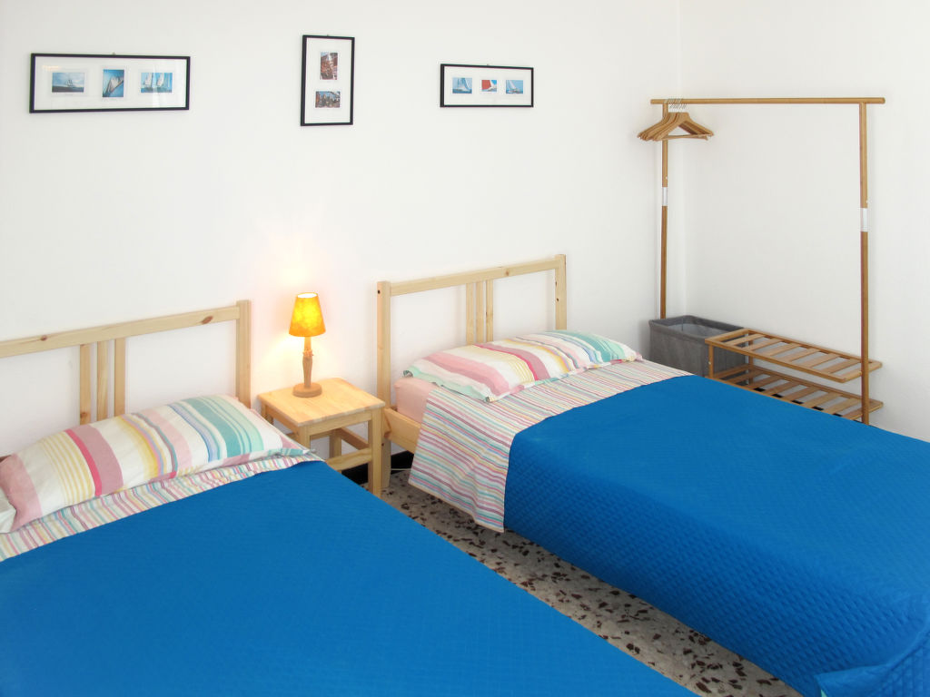 3-Zimmer-Haus, 2 Etagen, ca. 100 m². Zugang über Außentreppe in die 1. Etage: Wohn-/Schlafraum mit Doppelbettcouch (1,60 m breit), Kamin und Pizzaofen, offen zur Küche (4 Flammen, Backofen, Geschirrspüler, Kühl-/Gefrierkombination, Kaffeemaschine, Wasserkocher, Toaster) mit Essplatz. Bad/Bidet/WC. Treppe (ohne Geländer) in die 2. Etage: Schlafzimmer mit franz. Bett (1,60 m breit) und Terrassenausgang. Schlafzimmer mit 2 Einzelbetten und 1 Klappliege (alle 0,80 m breit) mit Terrassenausgang. Im Flur frei aufstellbares Einzelbett (1,40 x 0,70 m). Das Erdgeschoss bleibt verschlossen. Flexibilität bei der Bettenaufteilung: Es stehen mehr Schlafmöglichkeiten zur Verfügung als die maximal zugelassene Personenzahl, diese darf dennoch nicht überschritten werden. CITRA: 008041-LT-0011
