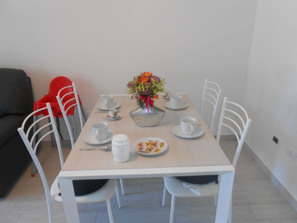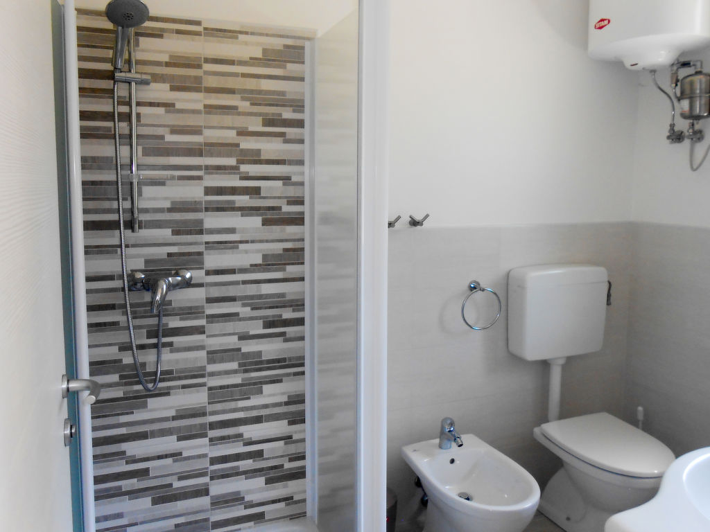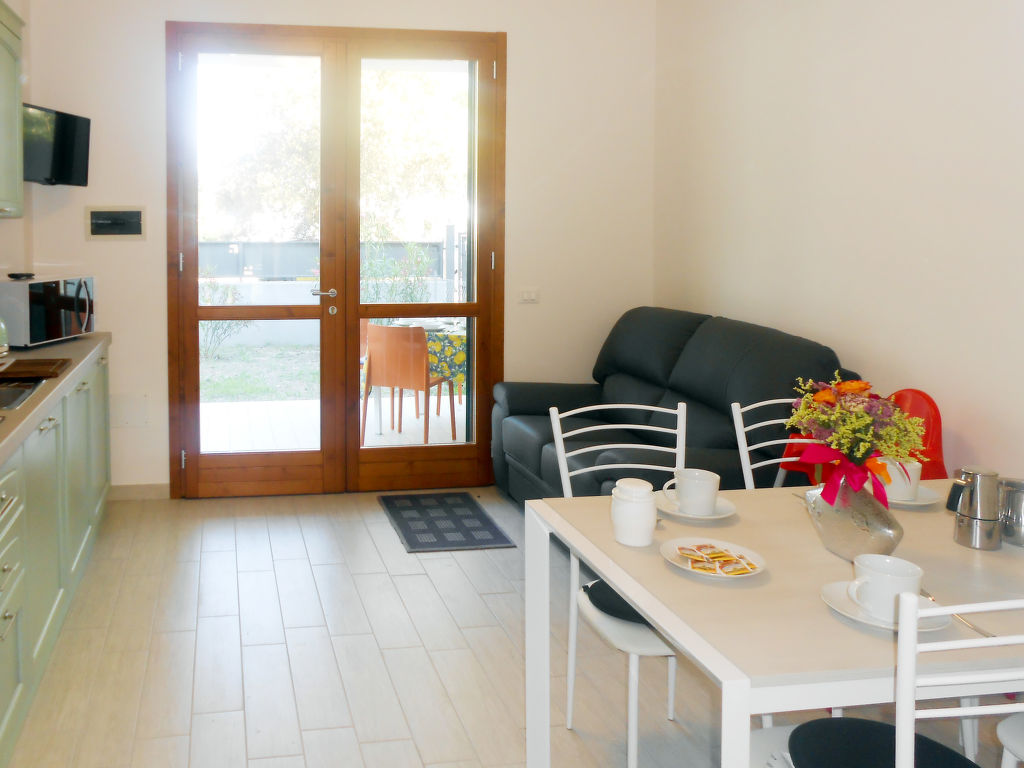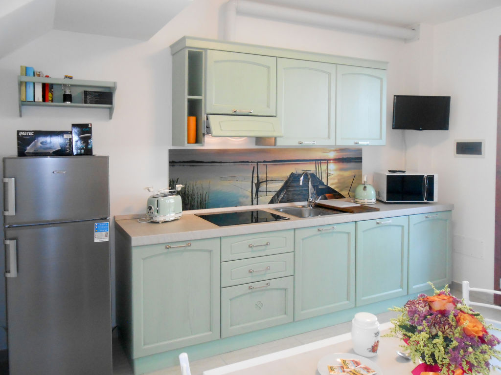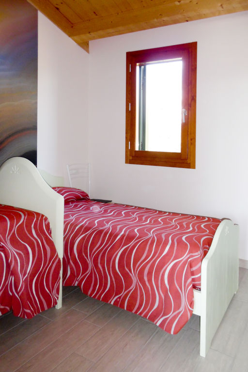 "Veronica", 3-Zimmer-Reihenhaus 58 m2 auf 2 Stockwerken. Zweckmässig eingerichtet: Wohn-/Esszimmer mit Esstisch und Sat-TV. Ausgang zur Terrasse. Kochnische (Geschirrspüler, 4 Induktionskochplatten, Toaster, Wasserkocher, Mikrowelle, Tiefkühler). Dusche/Bidet/WC. Obergeschoss: 1 Zimmer mit 1 Doppelbett. Ausgang zum Balkon. 1 Zimmer mit 2 Betten. E-Heizung, Klimaanlage. Balkon, Terrasse überdacht, Garten 182 m2. Terrassenmöbel, Gartengrill. Zur Verfügung: Waschmaschine, Bügeleisen, Fliegengitter. Internet (Wireless LAN, gratis). Parkplatz (2 Autos). Bitte beachten: geeignet für Familien. Nichtraucher-Haus. Eigener Eingang.