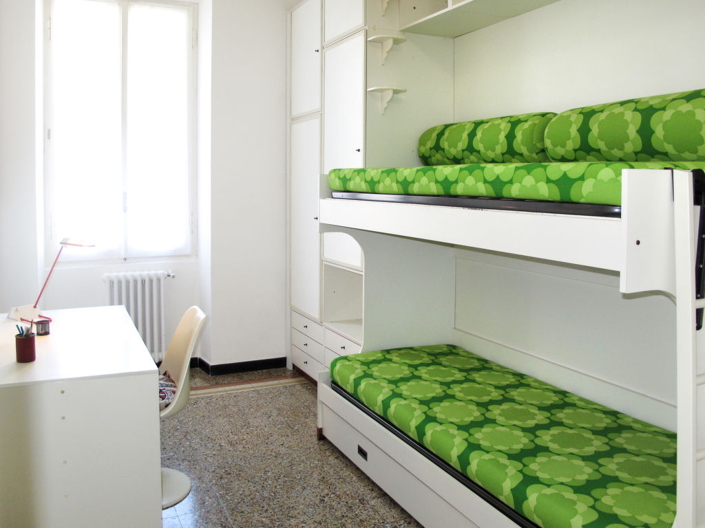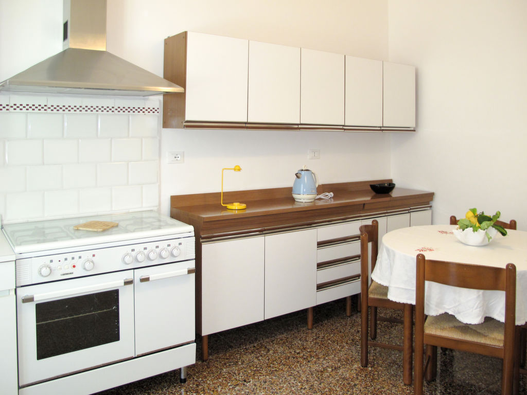 4-Zimmer-Wohnung, 1. Etage, ca. 100 m². Separater Zugang. Esszimmer mit Balkonausgang. Küche (5 Flammen, Backofen, Geschirrspüler, Kühl-/Gefrierkombination, Kaffeemaschine, Wasserkocher, Toaster) mit Essplatz für 4 Personen. Schlafzimmer mit franz. Bett (1,60 m breit). Zweibettzimmer (Betten 0,80 m breit, zusammengestellt). Schlafzimmer mit Etagenbett und darunterliegendem Ausziehbett. Dusche/Bidet/WC. CITRA: 009029-LT-0558