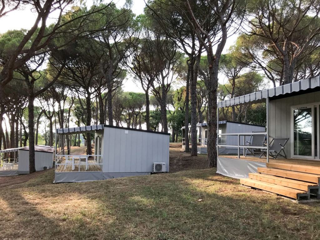 Die etwa 50 ha große komplett abgeschlossene Ferienanlage BELVEDERE PINETA besteht aus 66 Bungalows (GDO 200), 15 Wohnungen (GDO 202), 80 Mobilhomes (GDO 201/203), weiteren 12 Wohnungen sowie einem separaten Campingplatz und liegt im Ortsteil Belvedere (Gemeinde Aquileia), an der Meerlagune auf dem Festland vor Grado (7,5 km). In Aquileia (6 km) nächster Supermarkt, in Grado weitere Einkaufs- und Unterhaltungsmöglichkeiten. Das weitläufige, hügelige Gelände mit sehr altem Baumbestand ist gepflegt, jedoch naturbelassen. Der flach abfallende Sandstrand (besonders bei Ebbe sehr seichtes Wasser) ist für Fußgänger über eine Holzbrücke, die über die Uferstraße führt, zugänglich. An dem für unsere Gäste reservierten Strandabschnitt mit kleiner Bar können Sonnenschirme, Liegestühle, Tretboote und Kanus gemietet werden. Extra-Strandabschnitt für Hunde (an der Leine auch im Wasser erlaubt). In der Anlage: Supermarkt mit Kiosk, Restaurant/Bar/Pizzeria (auf Wunsch Halb- oder Vollpension möglich), Strandbar, Münzwaschmaschine und -trockner, Autowaschplatz, Fahrradverleih, Dog-Park. Internetpoint (WLAN, Bezahlung). Das Sport- und Freizeitprogramm umfasst: Pool (25 x 12,5 m, gesamte Saison geöffnet, Badekappenpflicht) mit Kinderbecken (12,5 x 12,5 m) und Liegewiese, Fussballplatz, Mini-Fussballplatz, Volleyball und Beachvolley, 2 Boccia-Bahnen, 2 Kinderspielplätze. Kleiner Bereich mit Fitness-Geräten im Freien. In der Hochsaison (Juli/August) Animation und Mini-Club (4-12 Jahre). Gegen Bezahlung: 4 Tennisplätze (2x Sand, 2x Kunstrasen), Minigolf (18 Loch), Tischtennis. Jeweils 1 Parkplatz pro Haus/Wohnung/Mobilhome in der Nähe, weitere Parkplätze gegen Bezahlung (€ 5 pro Auto/Tag). Die Doppelbungalows GDO 200 liegen am Rand der Anlage in Strandnähe (ca. 40-300 m) und haben jeweils teilüberdachte Terrasse mit Mobiliar, Sonnenliege und Außenkamin. Feriengerechte Einrichtung. Fliegengitter an allen Fenstern. Keine Heizmöglichkeit. Die Mobilhomes GDO 201 liegen in der Nähe der Sportplätze oder des Pools, ca. 300-600 m vom Strand entfernt und haben jeweils überdachte Terrasse mit Mobiliar und Sonnenliege. Auf Wunsch und gegen Kaution (€ 20) ist ein Holzkohlen-Grill am Ort erhältlich. Feriengerechte Einrichtung. Fliegengitter. Klimaanlage mit Kühl-/Heizfunktion im Wohnraum. Die komplett renovierten Wohnungen GDO 202 liegen in einem dreigeschossigen Gebäude in der Nähe des Eingangs des Anlage und ca. 250 m vom Strand entfernt. Überdachte Terrasse oder überdachter Balkon, jeweils mit Mobiliar und 2 Sonnenliegen. Neue, feriengerechte Einrichtung. Sat-TV (deutsche Programme). Fliegengitter. Klimaanlage mit Kühl-/Heizfunktion im Wohnraum. Die neuen Mobilhomes GDO 203 liegen zwischen Restaurant und Pool, ca. 400-500 m vom Strand entfernt und haben jeweils ca. 20 m² große, überdachte Terrasse mit Mobiliar und 2 Liegestühlen. Auf Wunsch und gegen Kaution (€ 20) ist ein Holzkohlen-Grill am Ort erhältlich. Neue, feriengerechte Einrichtung. Sat-TV (deutsche Programme). Fliegengitter. Klimaanlage mit Kühl-/Heizfunktion im Wohnraum.