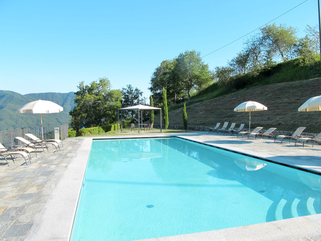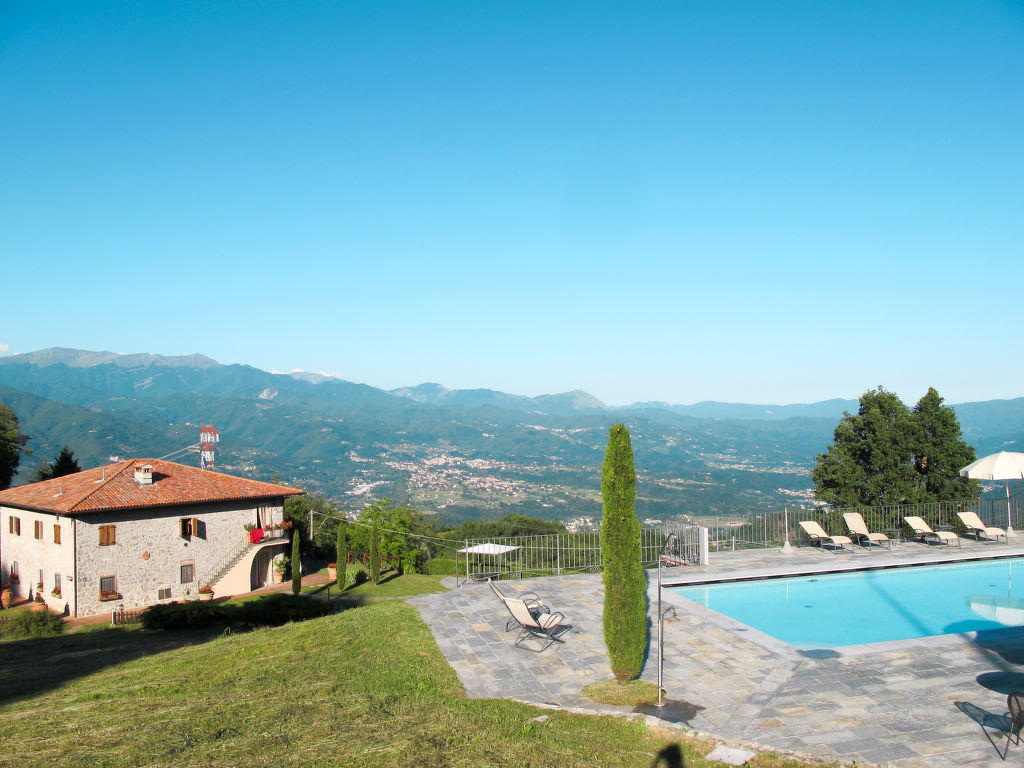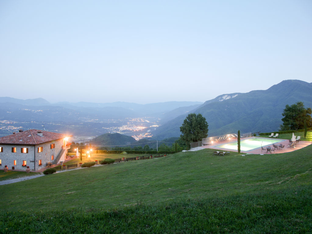 "Limone + Rosmarino + Gelsomino", 9-Zimmer-Haus 240 m2 auf 2 Stockwerken. Schön und rustikal eingerichtet: Wohnzimmer mit Sat-TV. Wohnzimmer mit Sat-TV. 1 Zimmer mit 1 Bett und 1 Doppelbett. 1 Zimmer mit 1 Doppelbett. Offene Küche (Backofen, Geschirrspüler, Gasherd, 4 Flammen, Tiefkühler, elektrische Kaffeemaschine, Pizzaofen) mit Esstisch, offenem Kamin, Essecke und Küchenblock. Dusche/WC. G-Heizung. Obergeschoss: (Aussentreppe) Wohnzimmer mit Sat-TV. 1 Zimmer mit 1 Bett und 1 Doppelbett. 1 Zimmer mit 2 Betten. 1 Zimmer mit 1 Bett und 1 Doppelbett. Ausgang zum Balkon. 1 Zimmer mit 1 Doppelbett. Offene Küche (Backofen, Gasherd, 4 Flammen, Tiefkühler, elektrische Kaffeemaschine) mit Esstisch, offenem Kamin. 2 Bäder/WC. Balkon, Gartensitzplatz, Laube. Balkonmöbel, Gartengrill. Herrliche Panoramasicht auf die Berge, das Tal und die Garfagnana. Zur Verfügung: Kinderhochstuhl, Babybett. Internet (Wireless LAN, gratis). Parkplatz (6 Autos). Bitte beachten: Nichtraucher-Unterkunft. Keine interne Verbindung zwischen den separaten Wohneinheiten.