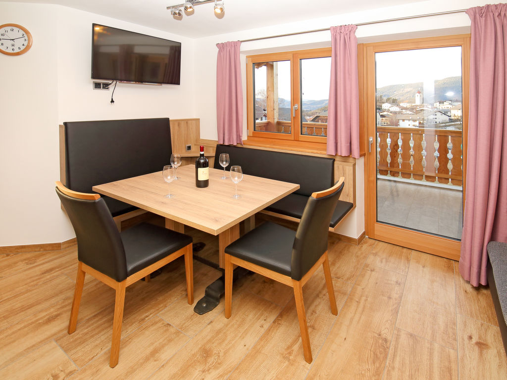 Das 2017 gebaute Haus RODERERHOF mit unseren beiden Ferienwohnungen, der Vermieterwohnung und einer dauervermieteten Wohnung: steht in leichter Hanglage auf 1175 m Höhe, im Dorf Lajen, 11,5 km von St. Ulrich und der Talstation der Bergbahn zur Seiser Alm entfernt. Zur Seceda-Seilbahn 11,9 km. Schöner Blick auf die Berge Schlern, Rittner Horn und die Brenta-Gruppe. Nächster Supermarkt ca. 250 m. Hallen- und Freibad 'Mar Dolomit' 12,5 km. 18-Loch-Golfplatz St. Vigil Seis 20 km. Zufahrt ca. 120 m über Schotterweg. Beide Wohnungen haben jeweils 3 Parkplätze auf dem Grundstück (ORS 511: einer davon überdacht). Abstellraum für Fahrräder. Vor dem Haus Wiese zur gemeinsamen Nutzung. Zur 2018 renovierten Ferienwohnung ORS 510 gehört ein Balkon mit Mobiliar. ORS 511 hat einen überdachten Balkon mit Mobiliar, Liegestühlen, Sonnenschirm und transportablem Grill. Ansprechende, gepflegte Einrichtung mit viel Holz. Holzdielen- und Fliesenboden. Sat-TV. Internetzugang (WLAN, inklusive). Waschmaschine. Bügeleisen/-brett. Fußbodenheizung. Hinweis: Rauchen ist in den Wohnungen nicht gestattet. Winter-Infos: Zur Talstation der Bergbahn ins Skigebiet Seiser Alm 11,5 km. Skibushaltestelle ca. 250 m. Skiraum.