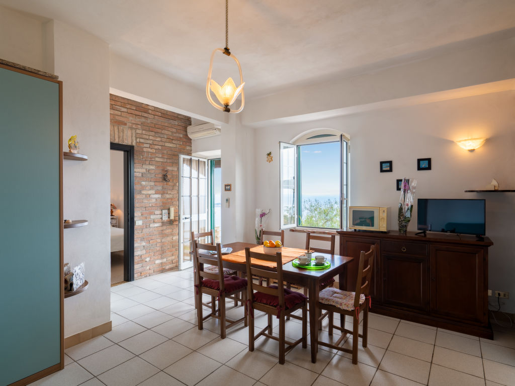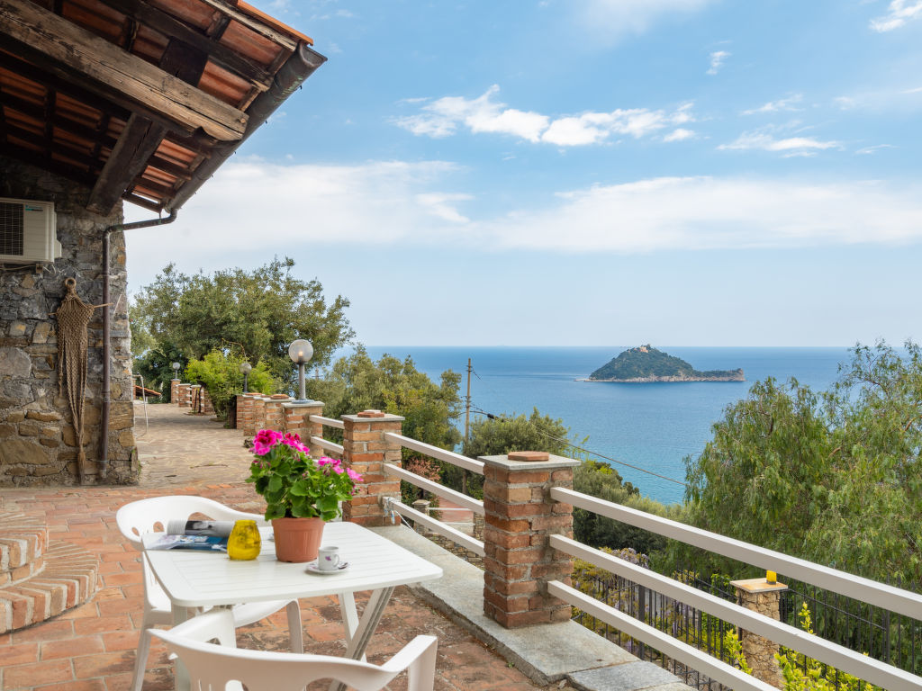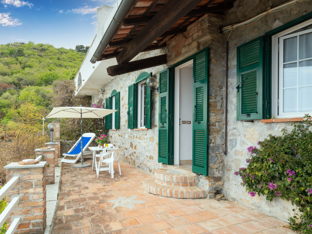 "Villetta Stella", 2-Zimmer-Haus 40 m2. Hell, stilvoll eingerichtet: Wohn-/Schlafzimmer mit 1 Doppeldiwanbett (140 cm), Esstisch und TV. Ausgang zur Terrasse. 1 kleines Zimmer, ohne Schrank mit 1 Doppelbett (160 cm). Kochnische (Backofen, 4 Flammen, Toaster, Wasserkocher, Mikrowelle, elektrische Kaffeemaschine). Dusche/WC. E-Heizung, Klimaanlage, Warmluftheizung. Terrasse 30 m2. Terrassenmöbel, Gartengrill. Herrliche Sicht auf das Meer und Isola Gallinara. Bitte beachten: Nichtraucher-Haus. CITRA: 009001-LT-0564