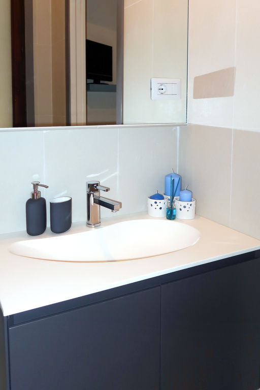 "La dolce vita", 4-Zimmer-Villa 150 m2, im Erdgeschoss. Komfortabel und modern eingerichtet: Wohn-/Esszimmer mit Esstisch und Sat-TV. Ausgang zur Terrasse. 2 Doppelzimmer, jedes Zimmer mit Dusche/Bidet/WC und Klimaanlage. Ausgang zur Terrasse. 1 Zimmer mit 1 Doppeldiwanbett und Dusche/Bidet/WC. Ausgang zur Veranda. Offene Küche (Backofen, Geschirrspüler, 5 Flammen, Wasserkocher, Mikrowelle, Tiefkühler, elektrische Kaffeemaschine). Sep. WC. G-Heizung (extra), Klimaanlage (extra). Terrasse überdacht, grosse Terrasse. Terrassenmöbel, Liegestühle (2), Sitzplatz. Zur Verfügung: Waschmaschine, Bügeleisen. Internet (Wireless LAN, gratis). Bitte beachten: Nichtraucher-Unterkunft. Maximal 2 Haustiere/Hunde erlaubt. Der Handlauf der Außentreppe, die zur Dachterrasse führt, ist nicht für Kleinkinder geeignet.