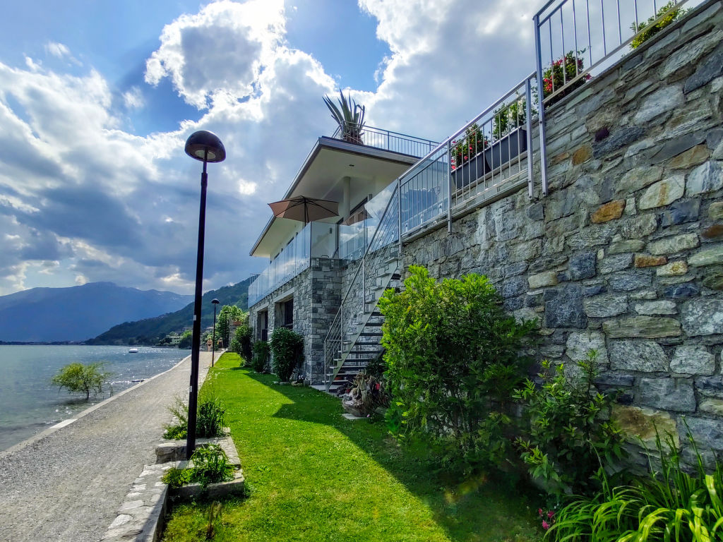 Modernes, komfortables Einfamilienhaus "Gelsomino", Baujahr 2018. Im Ortsteil Cinque Case, 1 km vom Zentrum von Gera Lario, am Ortsrand, 50 km vom Zentrum von Lugano, 58 km vom Zentrum von Como, 5 m vom See, direkter Zugang zum Strand, an einer Hauptstrasse. Zur Alleinbenutzung: Grundstück 210 m2 (eingezäunt) mit Rasen. Im Hause: Einstellraum für Fahrräder. Treppenweg (18 Stufen) bis zum Haus. Parkplatz beim Haus, Gemeinschaftsgarage (extra) in 20 m. Einkaufsgeschäft 1 km, Supermarkt 2.9 km, Kieselstrand 5 m, Grasstrand "Acquaforte" 230 m. Jacht-Hafen 1 km, Golfplatz (18 Loch) 26 km, Radweg 5 m. Bitte beachten: Hauptstrasse 30 m vom Haus.