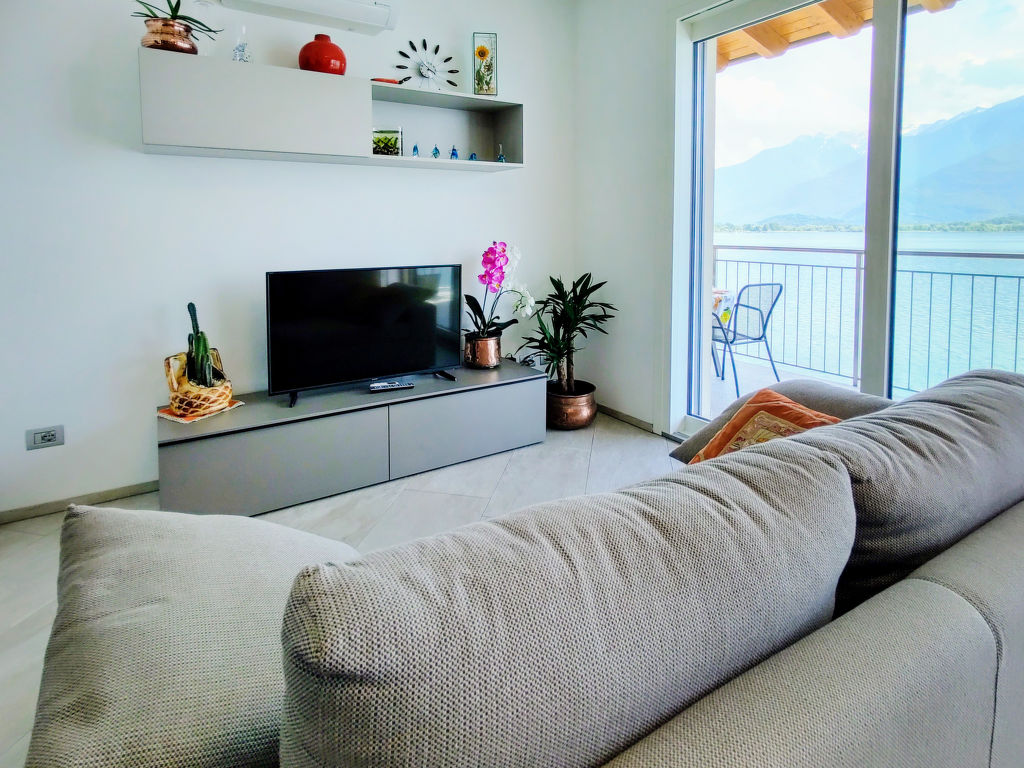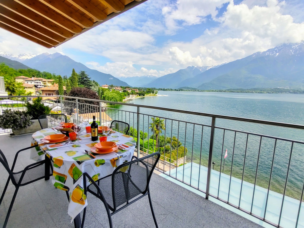 "Ciclamino (GLA127)", 3-Zimmer-Wohnung 65 m2 im 2. Stock. Modern und geschmackvoll eingerichtet: Wohn-/Esszimmer mit Esstisch und Sat-TV. Ausgang zum Balkon. 1 Zimmer mit 1 franz. Bett (160 cm). Ausgang zum Balkon. 1 Zimmer mit 2 Betten. Offene Küche (Backofen, Geschirrspüler, 4 Induktionskochplatten, Toaster, Wasserkocher, Mikrowelle, Tiefkühler, elektrische Kaffeemaschine). Dusche/WC. G-Heizung, Klimaanlage. Balkon. Balkonmöbel, Liegestühle (2). Herrliche Sicht auf den See, die Berge und Monte Legnone (2609 m). Zur Verfügung: Waschmaschine. Internet (Wireless LAN, gratis). Parkplatz beim Haus. Bitte beachten: Nichtraucher-Unterkunft. CIR: 013107-CNI-00034