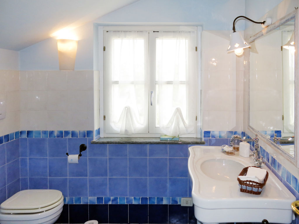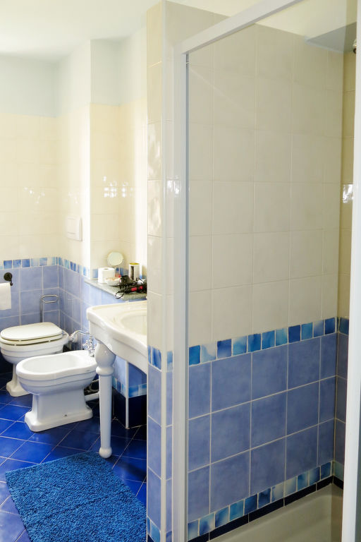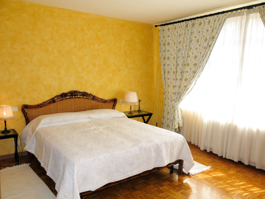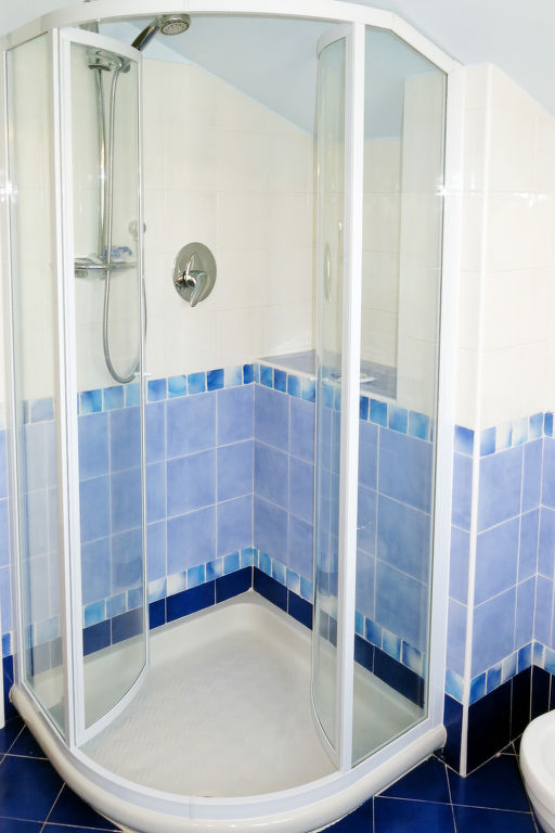 6-Zimmer-Hausteil, 2 Etagen, ca. 200 m². Erdgeschoss: Esszimmer mit Tisch, Bänken und Kamin. Küche (6 Flammen, Backofen, Mikrowelle, Geschirrspüler, Kühl-/Gefrierkombination, Wasserkocher, Toaster), Ausgang ins Freie. Treppe ins Obergeschoss: Wohnraum mit Sitzgruppe, Balkonausgang. Schlafzimmer mit franz. Bett (1,60 m breit), Balkonausgang, Dusche/WC. Schlafzimmer mit franz. Bett (1,60 m breit), Dusche/Doppelwaschbecken/WC. Einzelzimmer (1,20 m breit). Doppelzimmer. Dusche/WC. CIR: 005077-BEB-00003