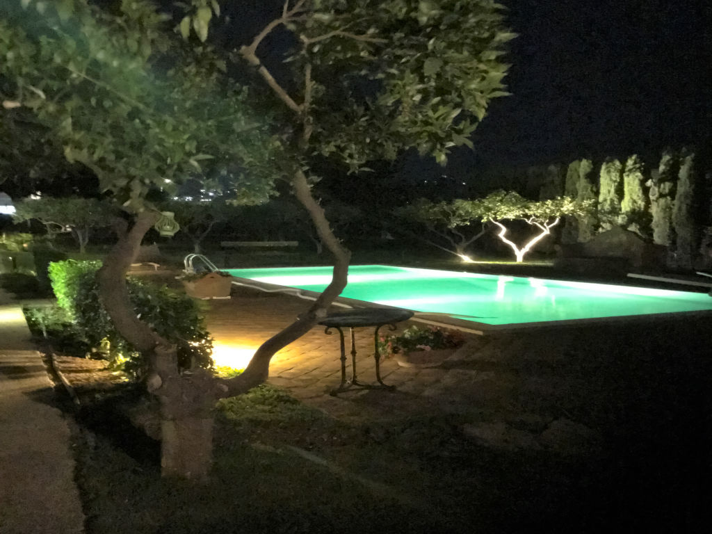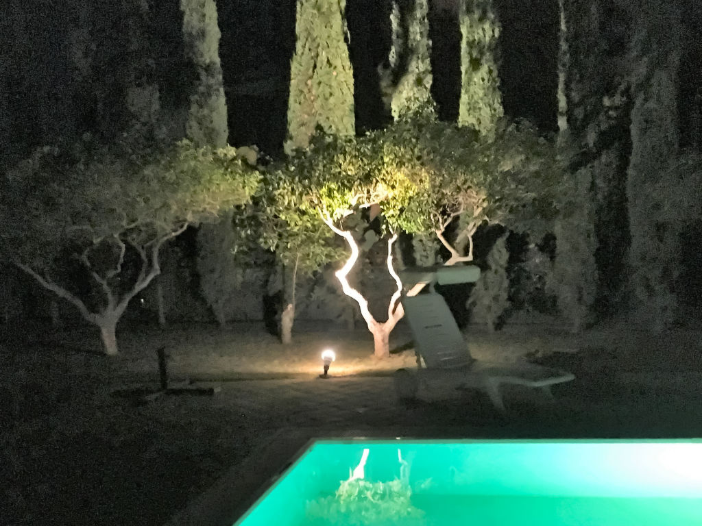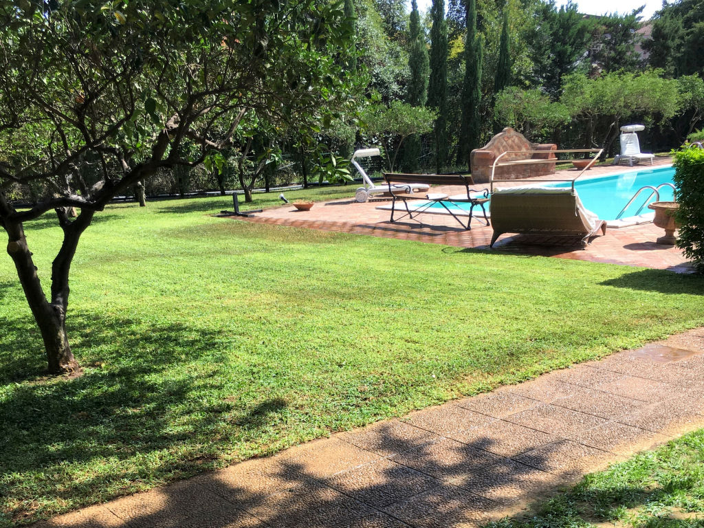 4-Zimmer-Wohnung 90 m2, im Erdgeschoss. Komfortabel und schön eingerichtet: grosses Wohn-/Esszimmer mit Panoramafenster mit Sat-TV (Flachbildschirm), Klimaanlage. Ausgang zum Garten, zum Schwimmbad. Wohnzimmer mit 1 Doppeldiwanbett und Ventilator. 1 Doppelzimmer mit Klimaanlage. 1 Zimmer mit 2 Betten und Ventilator. Offenes Durchgangszimmer mit Klimaanlage. Kochnische (5 Kochplatten, Backofen, Geschirrspüler, Mikrowelle, Tiefkühler). Dusche/WC, Bidet, sep. WC. Sicht auf das Schwimmbad und den Garten. Zur Verfügung: Waschmaschine, Bügeleisen, Haartrockner. Internet (Wireless LAN, gratis). Die Schlafzimmer haben keine Tür, aber Vorhänge.