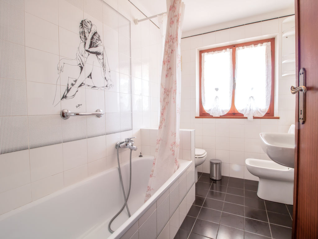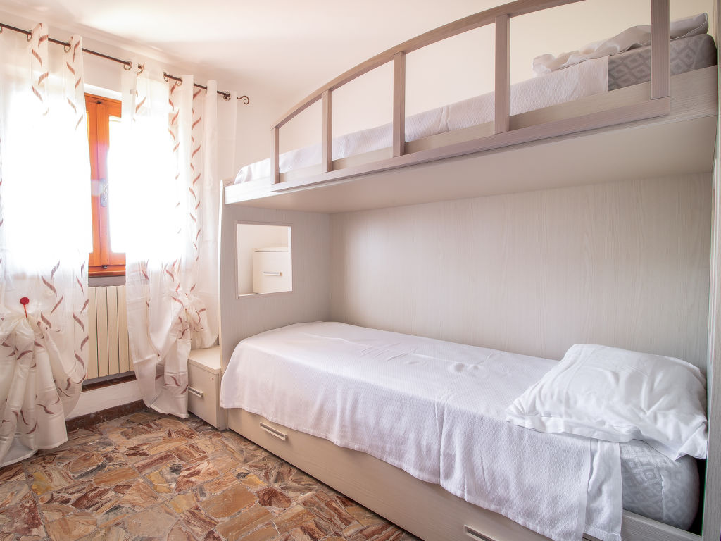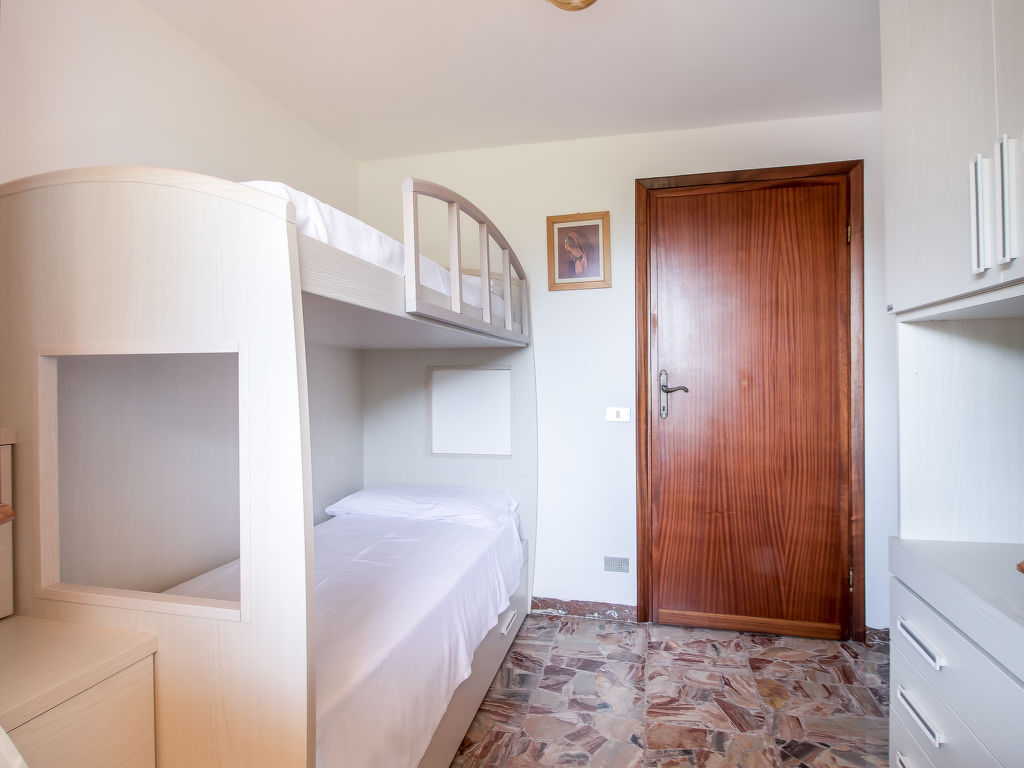 "Serenella", 4-Zimmer-Wohnung 100 m2, im Erdgeschoss. Einfach eingerichtet: Wohnzimmer mit Esstisch und Sat-TV. Ausgang zum Gartensitzplatz. Esszimmer. 1 kleines Zimmer mit 1 x 2 Etagenbetten. 1 Doppelzimmer. Ausgang zum Garten. Kleine Küche (4 Kochplatten, Backofen, Geschirrspüler, Mikrowelle). Bad/Bidet/WC, Dusche/Bidet/WC. Gartensitzplatz 20 m2, kleiner Garten. Zur Verfügung: Haartrockner. Internet (Wireless LAN, gratis). Parkplatz (eingezäunt). Geeignet für Familien.