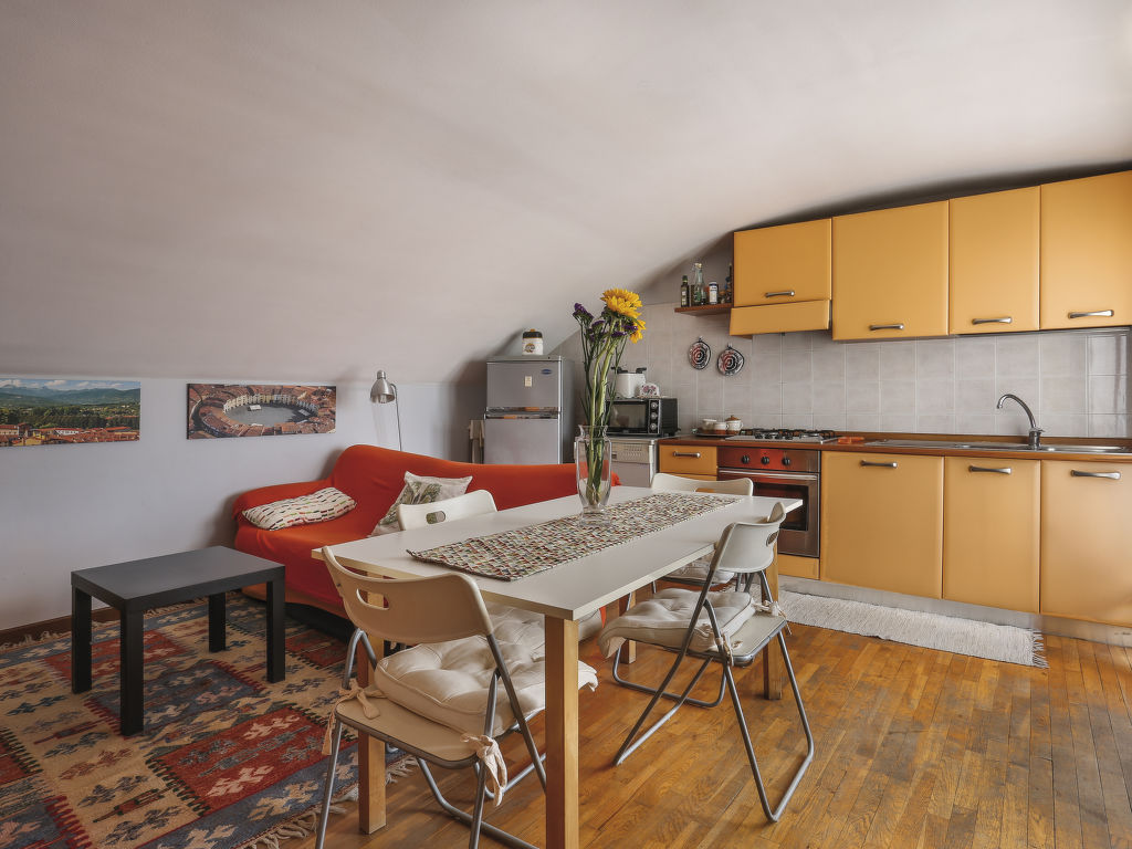 "La Rondine (LUU280)", 3-Zimmer-Wohnung 70 m2 auf 2 Stockwerken. Hell, zweckmässig eingerichtet: Obergeschoss: 1 Doppelzimmer mit Esstisch und Klimaanlage. 1 Zimmer mit 1 Doppeldiwanbett und 1 Schlafmöglichkeit. Dusche/WC. Dachgeschoss: abgeschrägtes Wohn-/Esszimmer mit TV. Ausgang zur Terrasse. Abgeschrägte, offene Küche (Backofen, Geschirrspüler, Gasherd, 4 Flammen, Toaster, Wasserkocher, Mikrowelle, Tiefkühler, elektrische Kaffeemaschine). Dusche/WC. Heizung, Klimaanlage. Terrasse. Terrassenmöbel. Zur Verfügung: Waschmaschine, Wäschetrockner, Bügeleisen, Kinderhochstuhl, Babybett bis 2 Jahre. Internet (Wireless LAN, gratis). Parkplatz in 25 m. Bitte beachten: Nichtraucher-Unterkunft. Maximal 2 Haustiere/Hunde erlaubt. Eigener Eingang.