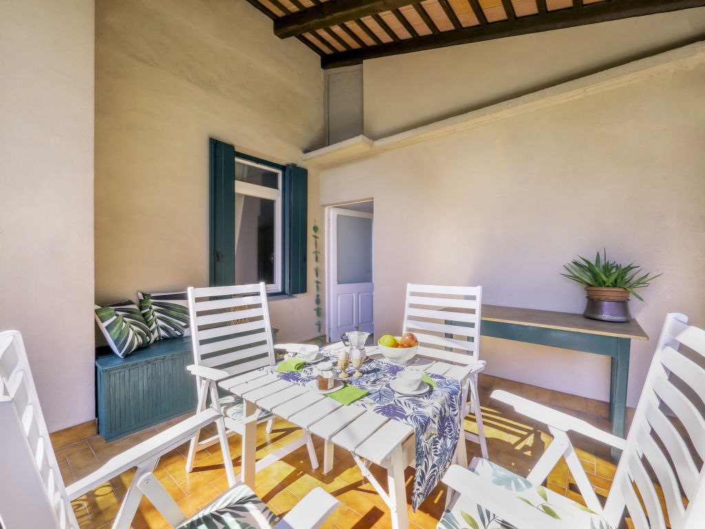 3-Zimmer-Haus, 2 Etagen, ca. 135 m². Erdgeschoss: Wohnraum mit 2 Sesseln, Essplatz, offen zur Küche (4 Flammen, Backofen, Geschirrspüler, Kühlschrank, Kaffeemaschine, Espressokapselmaschine). Waschraum mit Waschmaschine und Kühl-/Gefrierkombination. Dusche/WC. Obergeschoss: Doppelzimmer. Schlafzimmer mit Doppelbett und Einzelbett. Dusche/WC.