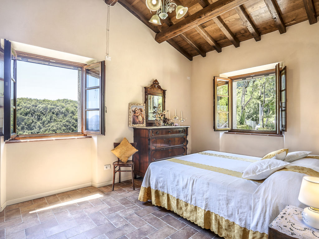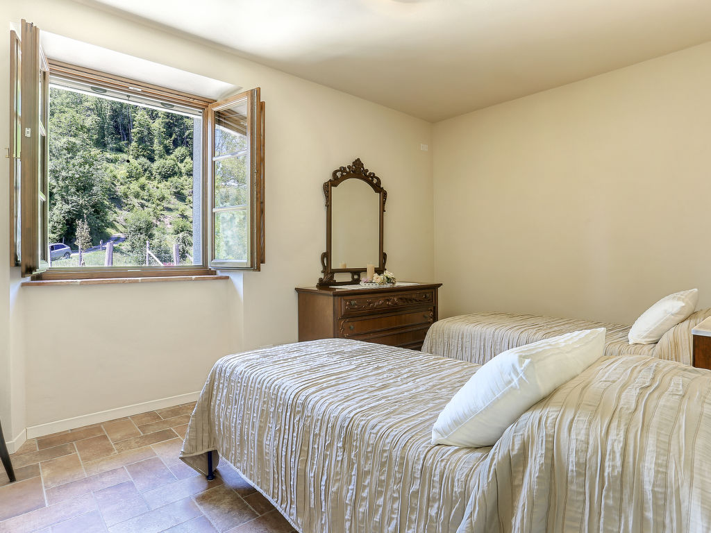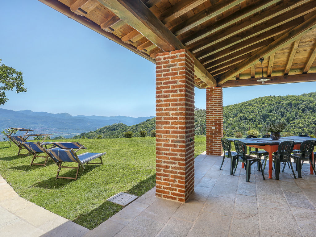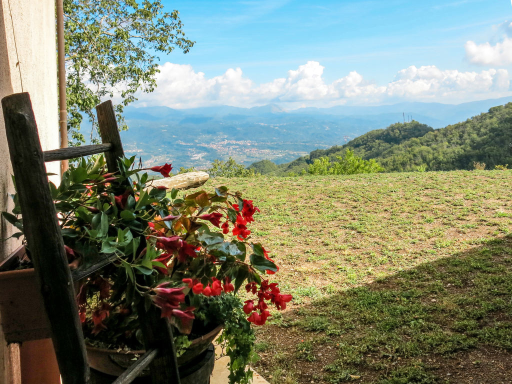 "Le Bore (CNG123)", 5-Zimmer-Haus 130 m2 auf 2 Stockwerken. Einfach und rustikal eingerichtet: Wohnzimmer mit Sat-TV und Internationale TV-Sender. Ausgang zur Terrasse. 1 Zimmer mit 1 Bett und Dusche/WC. Küche (1 Kochplatte, Backofen, Geschirrspüler, Gasherd, 4 Flammen, Tiefkühler, elektrische Kaffeemaschine) mit Esstisch. Ausgang zur Terrasse. Fussbodenheizung. Obergeschoss: 1 Zimmer mit 2 Betten. 1 Zimmer mit 1 Doppelbett. 1 Zimmer mit 1 Bett und 1 franz. Bett. Dusche/WC. Terrasse überdacht, Garten 200 m2, Rasen. Terrassenmöbel, Gartengrill, Abstellkammer. Herrliche Panoramasicht auf die Berge, das Tal und die Garfagnana. Zur Verfügung: Internet (Wireless LAN, gratis). Bitte beachten: Nichtraucher-Unterkunft. Eigener Eingang.