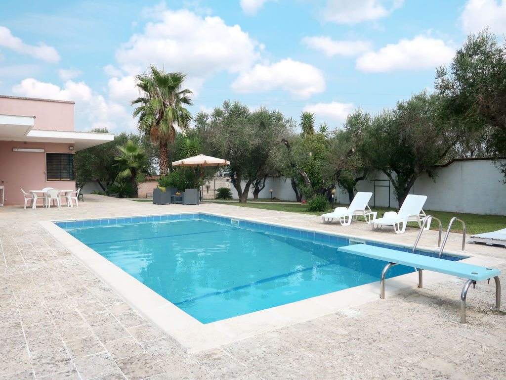 Martignano 17 km von Lecce: Villa "Giusy", umgeben von Bäumen und Feldern. Mietobjekt bestehend aus Haupt- und Nebengebäude, 17 km vom Zentrum von Lecce, 1.4 km vom Zentrum von Martignano, 25 km vom Zentrum von Otranto, 16 km vom Meer. Zur Alleinbenutzung: Garten 5'000 m2 (eingezäunt) mit Pflanzen und Bäumen, Naturgarten, Wiese, Schwimmbad (10 x 5 m, 90 - 250 cm tief, 02.05.-10.10.). Aussendusche, Terrasse, Poolpflege durch den Besitzer/Gärtner. Zufahrt (40 m Naturweg). Parkplatz (für 3 Autos) auf dem Grundstück. Supermarkt 2.1 km, Sandstrand "San Foca" 16 km, Felsstrand "Torre dell'Orso" 19 km.