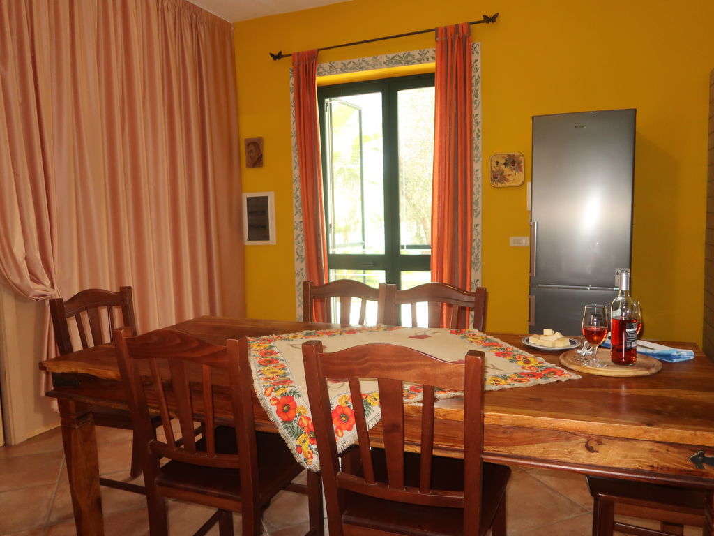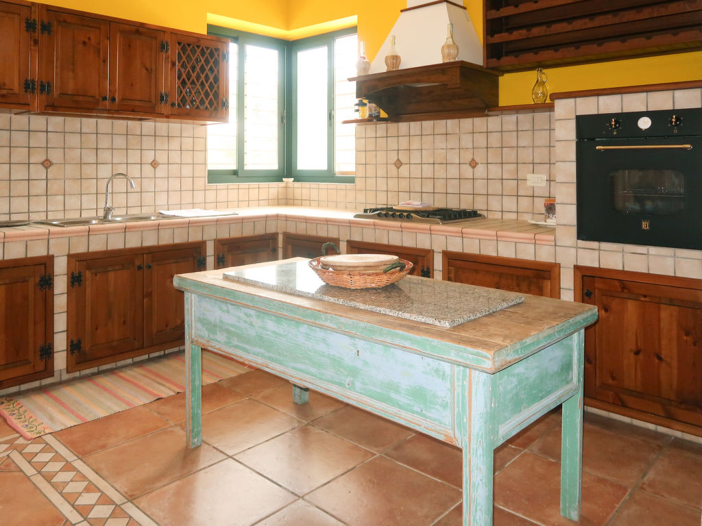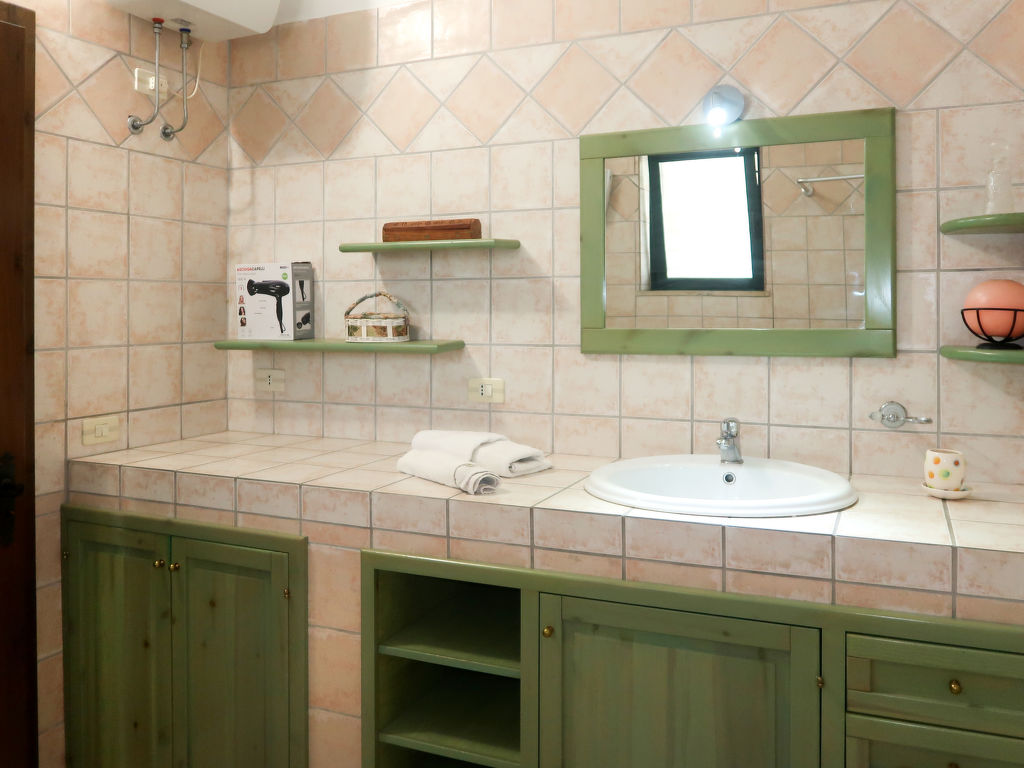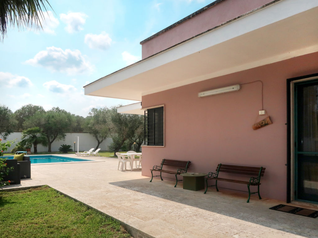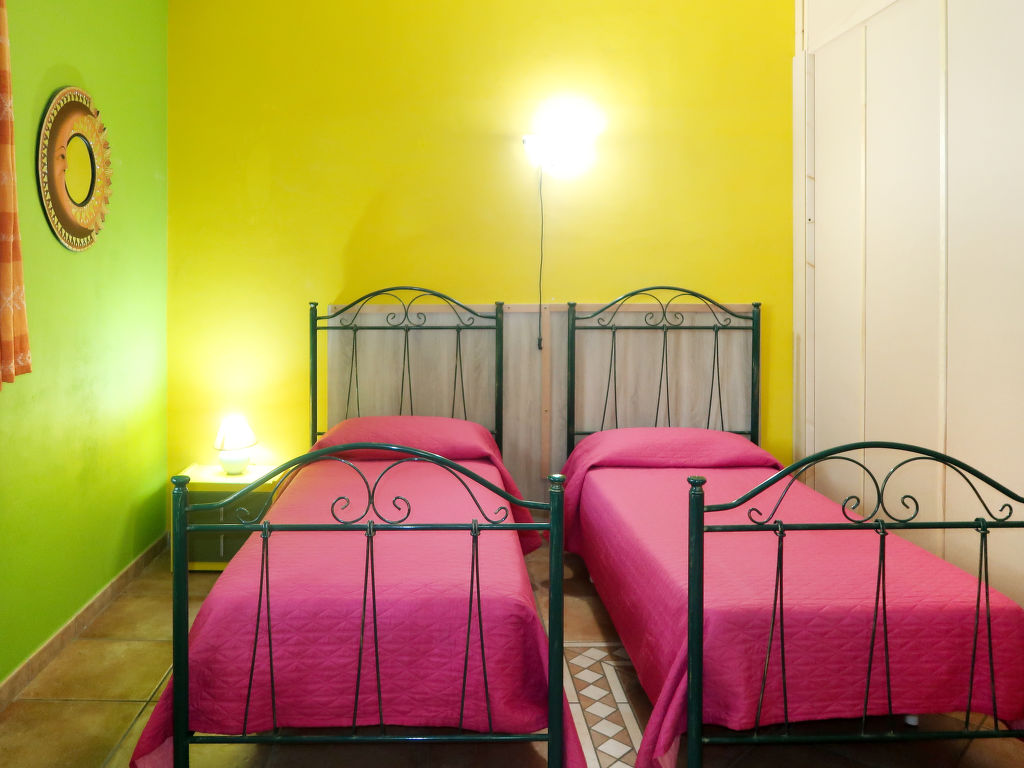 "Giusy (LEC300)", 4-Zimmer-Haus 110 m2. Zweckmässig und rustikal eingerichtet: Wohn-/Esszimmer mit Esstisch, TV, Klimaanlage und Warmluftheizung. Ausgang zum Garten. 1 Zimmer mit 1 franz. Bett (160 cm). 1 Zimmer mit 2 Betten und offenem Kamin. 1 Doppelzimmer mit Dusche/WC, Klimaanlage und Warmluftheizung. Offene Küche (Backofen, 5 Flammen, Toaster, Tiefkühler, Pizzaofen). Dusche/WC. Terrasse. Terrassenmöbel, Gartengrill, Liegestühle (6). Zur Verfügung: Waschmaschine, Babybett. Internet (Wireless LAN, gratis). Bitte beachten: ein Doppelzimmer liegt außerhalb der Wohnung. Maximal 1 kleines Haustier/Hund erlaubt. CIS: LE07504191000008039