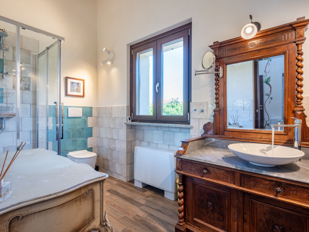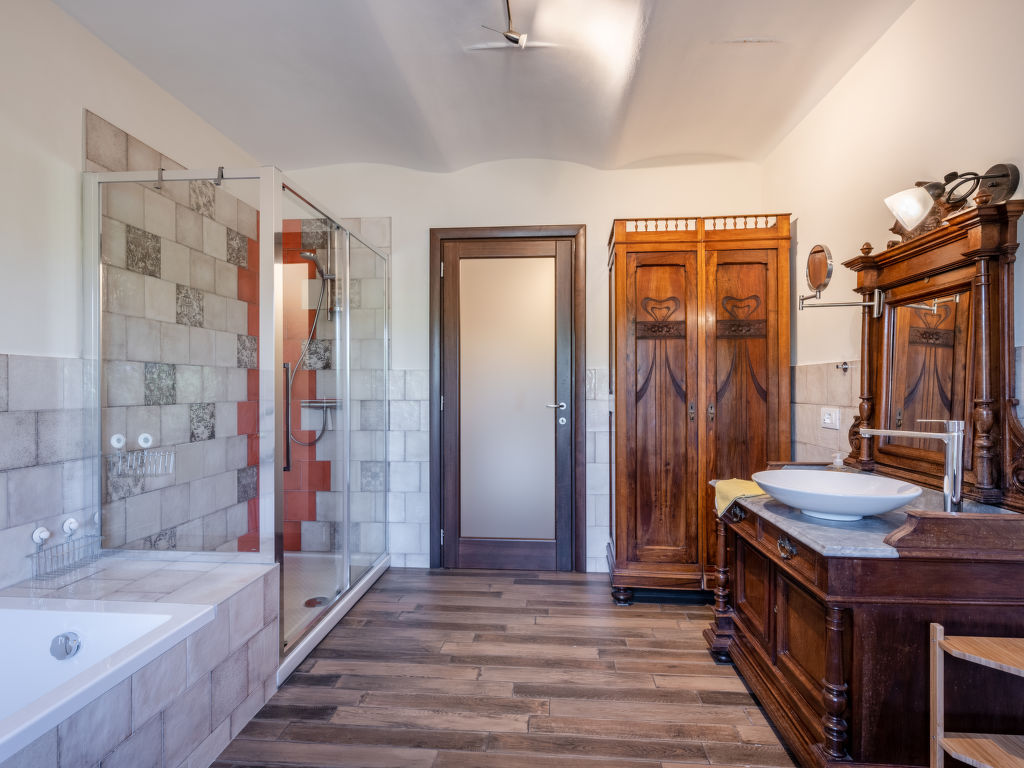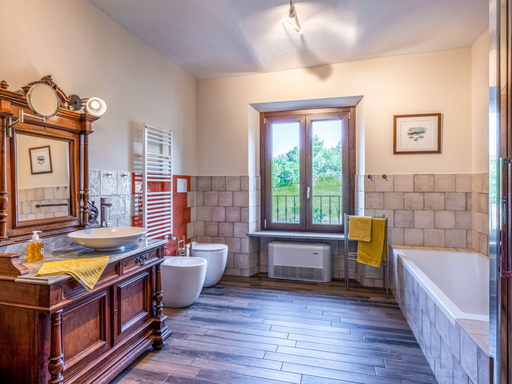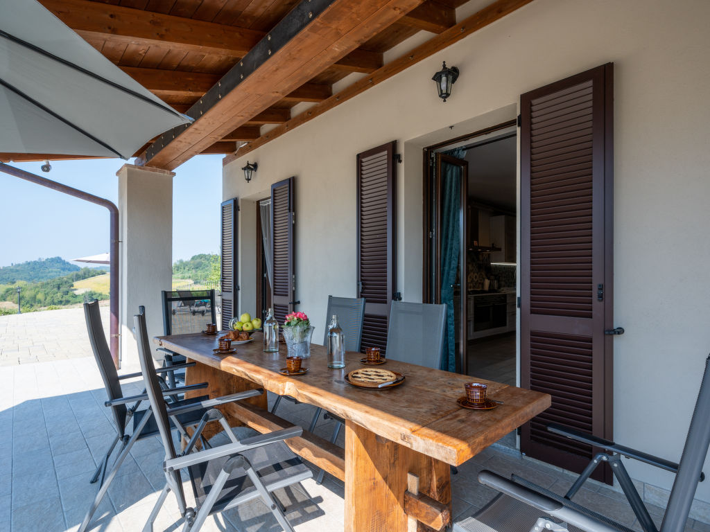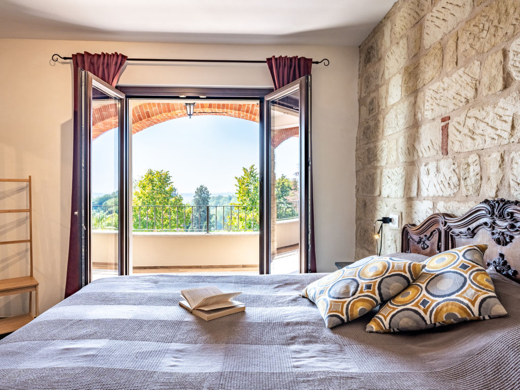 Das komfortable, zur Saison 2019 restaurierte, ehemalige Bauernhaus CASA CHIARA steht am Ortsrand von Ponzano Monferrato. Erhöhte Hanglage mit Blick auf die umliegende Hügellandschaft und das Schloss von Ponzano, das im Besitz einer Adelsfamilie ist. Ortsmitte ca. 200 m. Supermarkt in Moncalvo 4 km. Direkt vom Haus aus lohnenswerte Wanderung (2 km) zur Wallfahrtskirche 'Monte Sacro di Crea' auf der Spitze eines Hügels (Rundweg mit 23 weiteren kleinen Barockkapellen). Rund um das Natursteinhaus ca. 2000 m² großes, umzäuntes, teils gepflastertes Grundstück mit Grünflächen. Ferngesteuertes Einfahrtstor. Parkplätze. Auf Anfrage und Bestellung am Ort Weinprobe in benachbartem Weingut. Schön gelegener Pool (10,5 x 5 m, 1,50 m tief, Nachtbleuchtung, 15.05.-30.10.) mit Sonnenterrasse, Sonnenliegen und Sonnenschirm. Außendusche. Der Gärtner kümmert sich 1x wöchentlich um die Garten- und Poolpflege. Am Haus 2 Terassen, eine davon ca. 25 m² groß und überdacht (Mobiliar). 3 Balkone. Transportabler Grill. Das Ferienhaus wurde geschmackvoll und mit Liebe zum Detail sorgfältig renoviert. Stilvolle, gute Einrichtung mit geschmackvollen Landhausmöbeln, teils Antiquitäten. Angenehme, gepflegte Wohnatmosphäre. Cotto- und Fliesenböden. Gehobene Küchenausstattung. Gemütlicher Wohnraum mit Beamer (Cromecast-Zugang). TV, Stereoanlage. Internet (WLAN, inklusive). Waschmaschine. Trockner. Gas-Zentralheizung. Klimaanlage. Hinweis: Rauchen ist im Haus nicht gestattet.