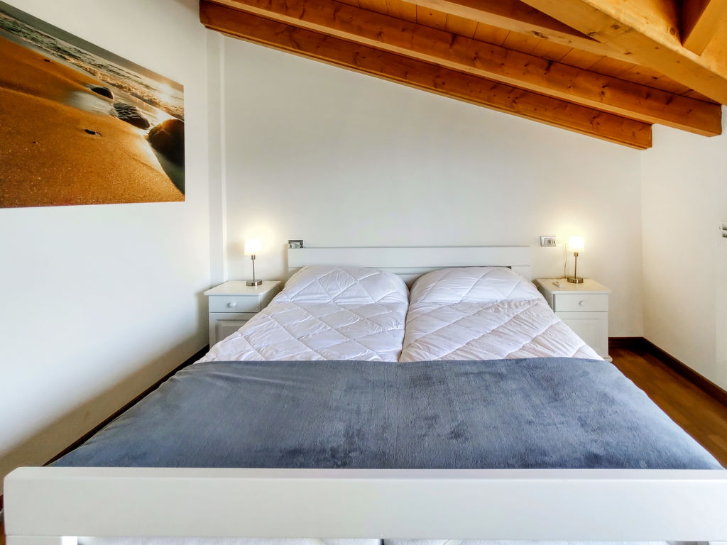 3-Zimmer-Wohnung, Dachgeschoss (Dachschrägen), ca. 75 m². Zugang über Außentreppe. Wohnraum mit Sitzgruppe, Essplatz und Balkonausgang. Zum Wohnraum offen Küche (4 Ceranfelder, Backofen, Mikrowelle, Geschirrspüler, Kühlschrank, Kaffeemaschine, Wasserkocher, Toaster). Doppelzimmer mit Balkonausgang. Schlafzimmer mit Etagenbett. Bad/WC. Dusche/WC. 012114-CNI-00060