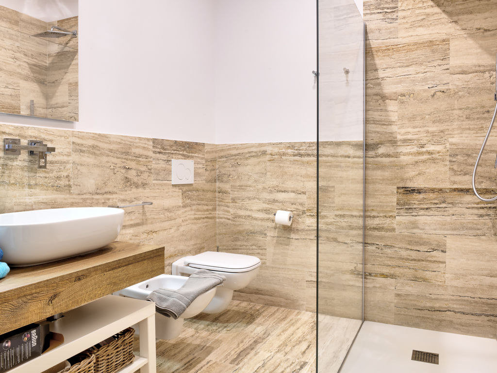 5-Zimmer-Wohnung 156 m2 auf 2 Stockwerken. Hell, schön und geschmackvoll eingerichtet: Wohn-/Schlafzimmer mit 1 Diwanbett, 1 Doppelbett, Esstisch, Küchenblock und Sat-TV. Ausgang zur Terrasse. Wohn-/Schlafzimmer mit 1 Doppelbett, 1 Schlafmöglichkeit, Esstisch, Küchenblock und Sat-TV. Ausgang zur Terrasse. Kochnische (Backofen, Geschirrspüler, 4 Glaskeramikherd Platten, Tiefkühler, elektrische Kaffeemaschine). 3 Duschen/Bidet/WC. Heizung, Klimaanlage. Obergeschoss: Wohn-/Esszimmer mit offenem Kamin, Esstisch und Sat-TV. Ausgang zur Terrasse. 2 Doppelzimmer. Ausgang zur Terrasse. Kochnische (Backofen, Geschirrspüler, 5 Flammen, Tiefkühler, elektrische Kaffeemaschine). Dusche/WC. Heizung, Klimaanlage. Natursteinböden. 2 Terrassen 15 m2, Terrasse 30 m2, Garten. Terrassenmöbel. Schöne Sicht auf das Meer. Zur Verfügung: Safe. Internet (Wireless LAN, gratis). Bitte beachten: Nichtraucher-Haus. 1 kleines Haustier/Hund erlaubt. Keine interne Verbindung zwischen den separaten Wohneinheiten. Keine interne Verbindung zwischen den Etagen.
