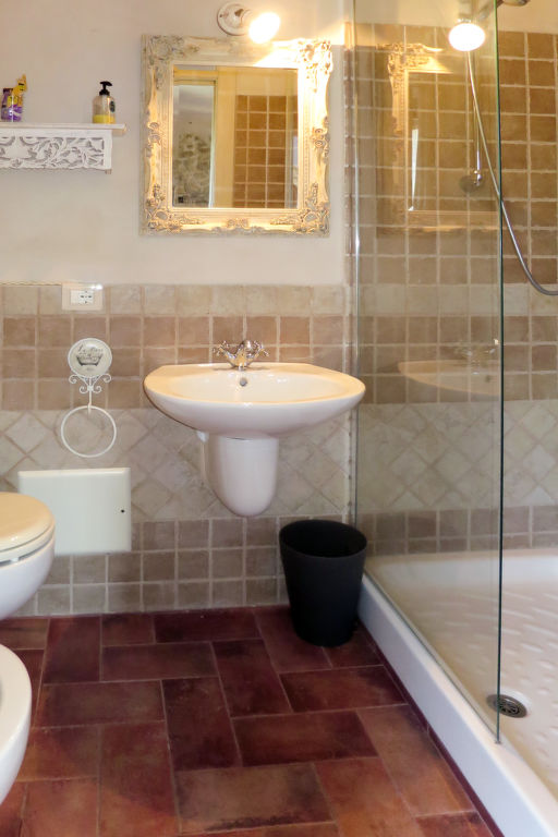 "Milleunapietra", 6-Zimmer-Haus 220 m2 auf 3 Stockwerken. Renoviert im Jahre 2015, rustikal eingerichtet: Wohnzimmer mit TV. Ausgang zum Garten. Esszimmer mit Schwedenofen und Esstisch. Küche (Backofen, Geschirrspüler, 4 Flammen, Toaster, Wasserkocher, Mikrowelle, Tiefkühler). Dusche/WC. Obergeschoss: 1 Zimmer mit 1 franz. Bett (160 cm), Dusche/WC. Durchgangszimmer mit 1 Bett und 1 Diwanbett. 1 Zimmer mit 1 franz. Bett (160 cm), Dusche/WC. 2. Obergeschoss: 1 abgeschrägtes, offenes Zimmer mit 2 Betten. Ausgang zur Terrasse. 1 abgeschrägtes Zimmer mit 2 Betten und 1 franz. Bett (160 cm). Kleine Küche (2 Kochplatten) mit Esstisch. Dusche/WC. Heizung. Terrasse. Terrassenmöbel, Gartengrill (mobil), Liegestühle (4). Panoramasicht. Zur Verfügung: Waschmaschine, Kinderhochstuhl, Babybett. Internet (Wireless LAN, gratis). Bitte beachten: Nichtraucher-Haus. Bei Belegung mit weniger Personen als der maximalen Personenzahl stehen nicht alle Schlafzimmer zur Verfügung.