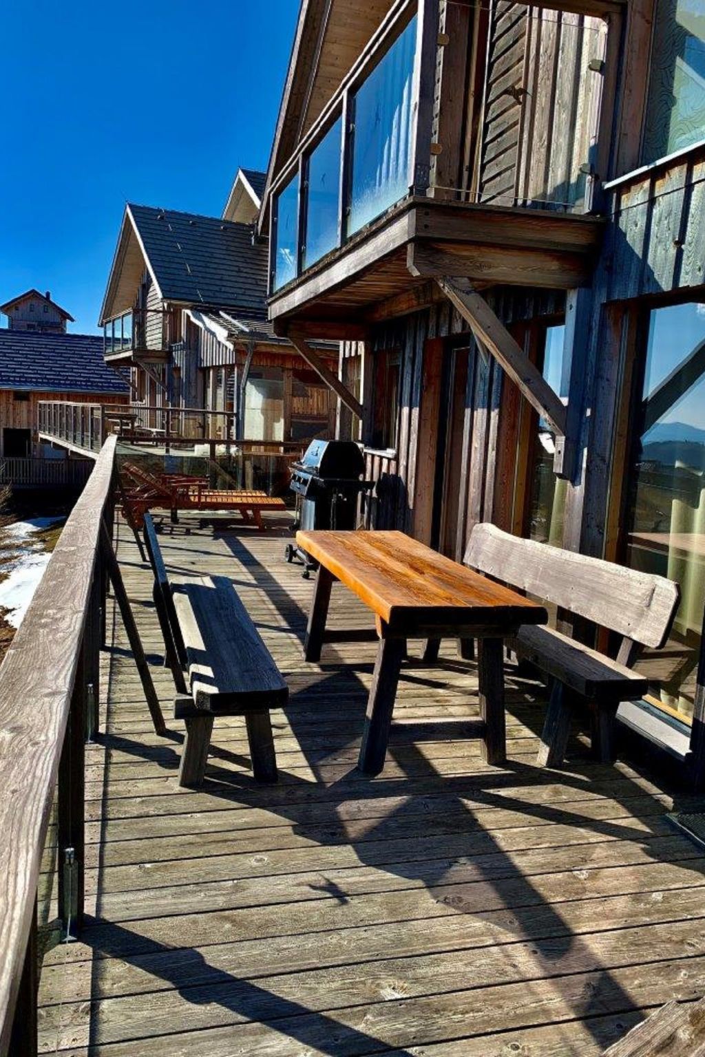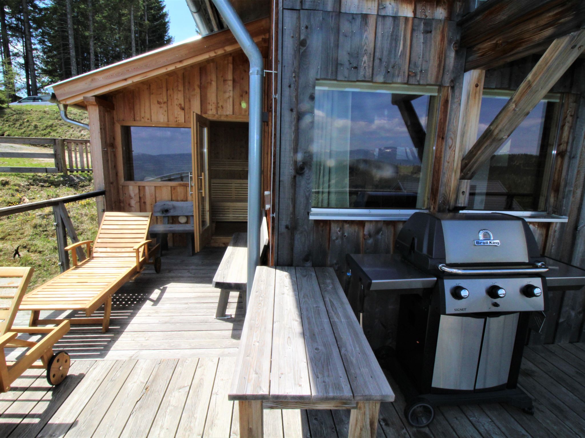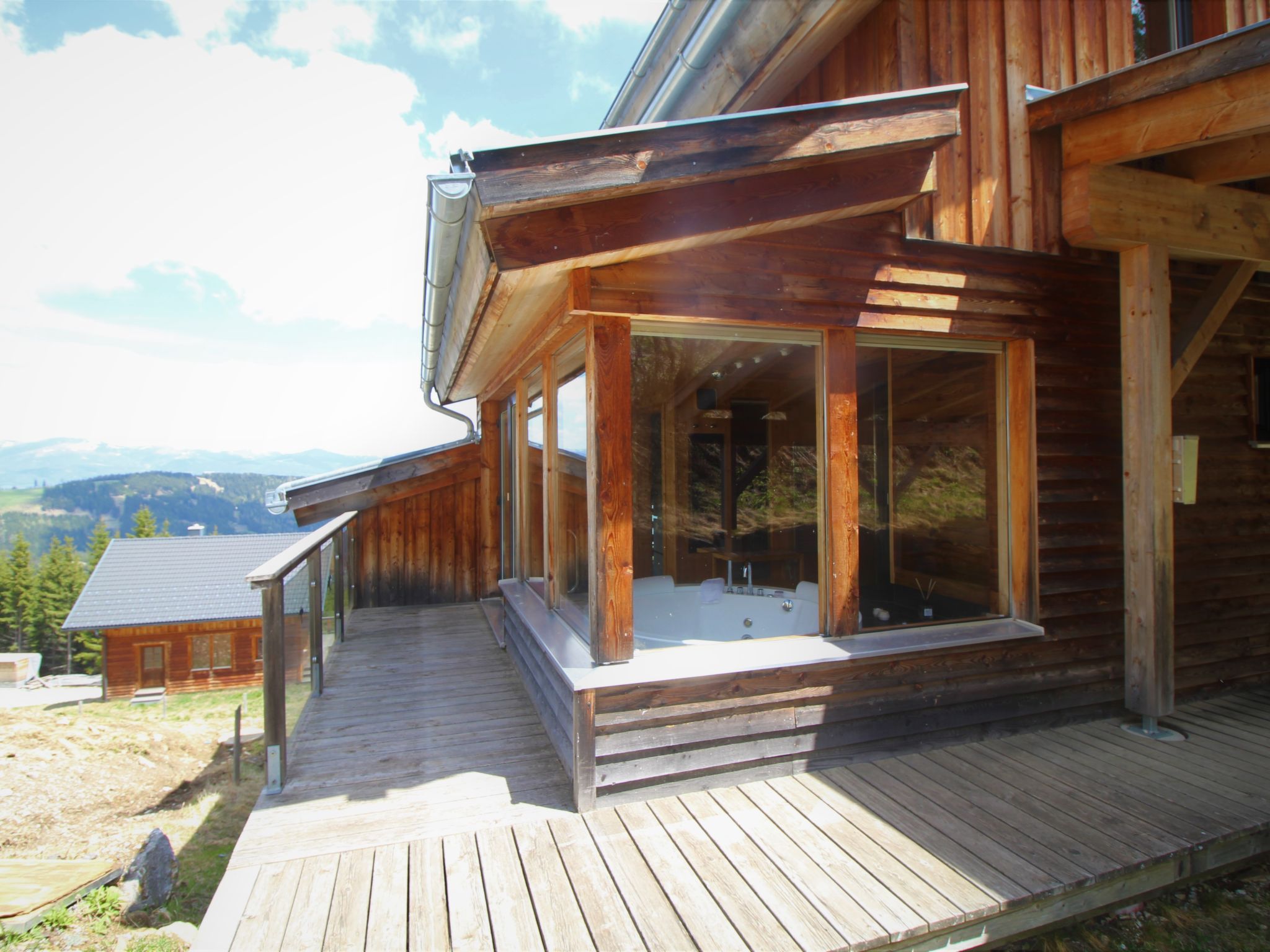 Klippitztörl: Grosses, luxuriöses Chalet "Panoramo", 1'600 m.ü.M., auf 4 Stockwerken. Im Ortsteil Kliening, sonnige Lage am Hang, 600 m vom Skigebiet. Zur Alleinbenutzung: naturbelassenes Grundstück. Im Hause: Wireless LAN, Sauna, Infrarotwärmekabine, Sonnenterrasse, Skiraum, Waschmaschine, Wäschetrockner, Skischuhtrockner. Holprige Zufahrt bis zum Haus (1 km Naturweg). Im Winter bitte Schneeketten mitbringen. Parkplatz (für 2 Autos, überdacht) beim Haus. Lebensmittelgeschäft 15 km, Restaurant 1 km, See Längssee 35 km. Wanderwege ab Haus 10 m, Sessellift 600 m, Skipisten, Skiverleih 300 m, Skischule 2 km, Schlittelbahn 2 km. Nahe gelegene Sehenswürdigkeiten: Sommerrodelbahn Klippitztörl 2 km, Klettergarten 2 km. Bekannte Seen in der Umgebung sind gut erreichbar: Längssee 35 km, Klopeinersee 60 km. Wandergebiete: Koralm, Saualm, Lavantaler Alpen. Bitte beachten: Fahrzeug empfohlen. Bei guter Schneelage Zufahrt mit den Skiern bis zum Haus. Selbstbedienungsautomat für Verpflegung und Dinge des täglichen Bedarfs in 500m. Laut Auskunft des Providers kann der WLAN-Empfang aufgrund der geografischen Lage am Berg nicht durchgehend gewährleistet werden und ist stark witterungsabhängig.