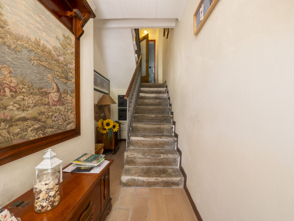 5-Zimmer-Haus, 2 Etagen, ca. 120 m². Erdgeschoss: Wohnraum mit Sitzcouch, Kamin, Essplatz und Küchenzeile (4 Flammen, Backofen, Mikrowelle, Geschirrspüler, Kühl-/Gefrierkombination, Wasserkocher, Toaster, Kaffeepadmaschine, ein Teil der Küchengeräte steht in einem separaten kleinen, über 2 Stufen zugänglichen Raum). Zwischenebene: Sep.WC. Obergeschoss: 2 Doppelzimmer (Betten jeweils 1,60 m breit), jeweils mit Dusche/WC. Doppelzimmer. Zweibettzimmer mit Dusche/WC. Verbindungstür zwischen den letzteren beiden Schlafzimmern.