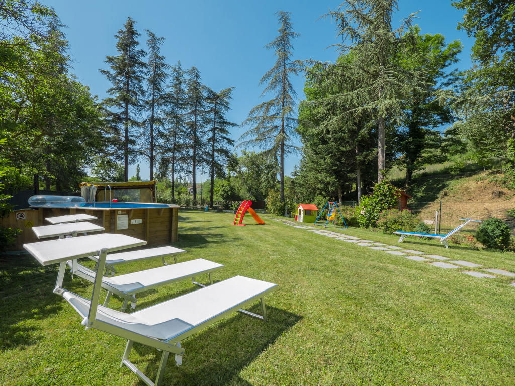 Casinina 16 km von Urbino: Haus "Green Wellness House", auf 2 Stockwerken, einseitig angebaut. Unterhalb von Tavoleto, ausserhalb des Ortes, 700 m vom Zentrum von Casinina, 26 km vom Meer, im Grünen. Zur Alleinbenutzung: Grundstück 380 m2 (eingezäunt) mit Rasen und Pflanzen, Aufstellpool (4 m Durchmesser, 120 cm tief, 01.05.-30.09.). Tischtennis, Gartenmöbel, Grill, Kinderspielplatz, Poolpflege durch den Besitzer/Gärtner. Im Hause: Sauna, Sprudelbad (alles inkl.), Wellnessbereich, Tischfussball. Wohnungsreinigung möglich (extra). Parkplatz auf dem Grundstück. Supermarkt 700 m, Sandstrand "Cattolica" 26 km. Nahe gelegene Sehenswürdigkeiten: Urbino 16 km, Misano World Circuit 24 km, San Marino 30 km, Pesaro 38 km, Rimini 46 km. Jugendgruppen nur auf Anfrage. Die Residenz wird durch elektrische Tore geschlossen.