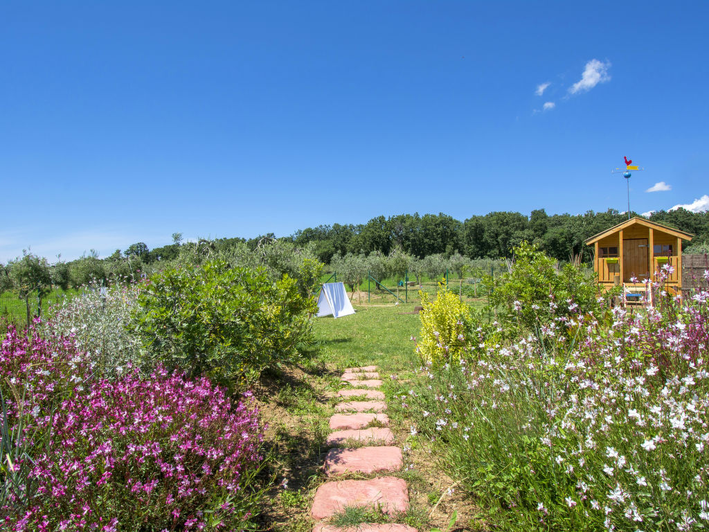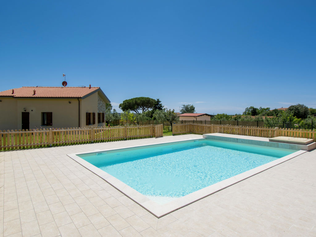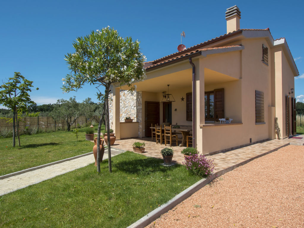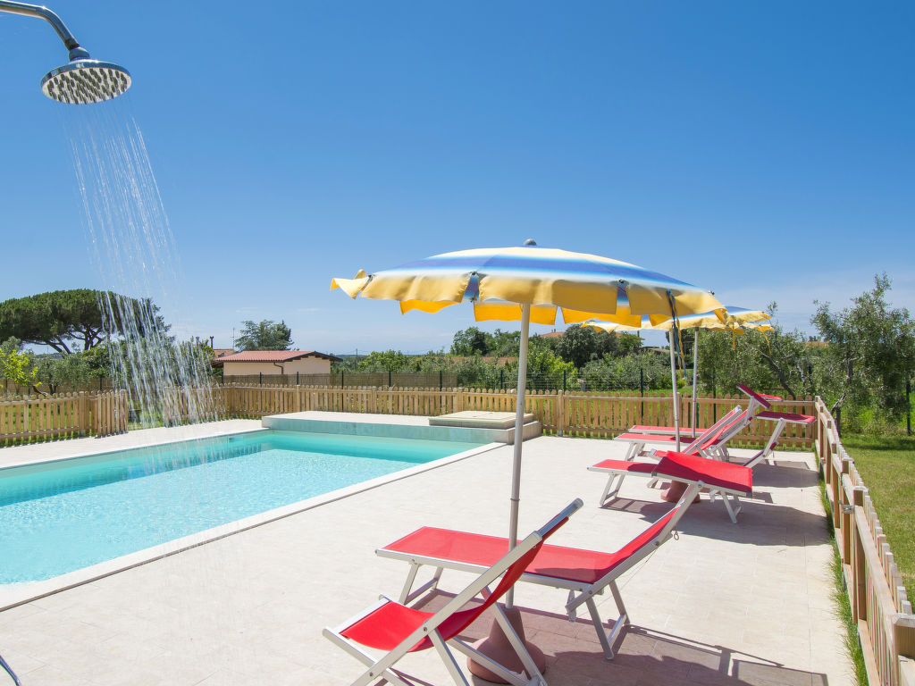 Das 2020 gebaute Ferienhaus IL MELOGRANO steht in der ländlichen Ebene, 4 km von San Pietro in Palazzi und 8,5 km von Riparbella entfernt. Nächster Supermarkt 4 km, Restaurant 1,5 km. Die Sandstrände von Marina di Cecina sind 6,5 km entfernt. Herrlicher Panoramablick. Um das Haus ca. 4000 m² großes, umzäuntes Gartengrundstück mit Wiese, Rasen, Olivenbäumen und gekiester Fläche. Kinderspielplatz mit Holzhäuschen. Der Gemüsegarten des Besitzers steht den Gästen offen (wöchtentliche Grundstückspflege). Auf einem benachbarten Bauernhof können die Gäste Milch und Eier kaufen. Zufahrt ca. 100 m über Schotterweg. 2-3 Parkplätze auf dem Grundstück. Auf der Vorderseite des Hauses ca. 15 m² große, überdachte Terrasse mit Holzbank und -tisch, im Garten hinter dem Haus möblierter Freisitz. Transportabler Grill. Wenige Meter hinter dem Haus liegt der schöne Pool (ca. 8 x 5 m, max. Tiefe 1,50 m, 27.03.-06.11.) mit gefliester Terrasse, Außendusche, 8 Sonnenliegen und 4 Sonnenschirmen. Das Ferienhaus ist ansprechend und geschmackvoll eingerichtet. Flieseböden. Waschmaschine. 2x Sat-TV. Internetzugang (WLAN, inklusive). Gas-Zentralheizung. Hinweis: Rauchen ist im Haus nicht gestattet. EXTRA: Eine Sonnenliege, ein Liegestuhl und ein Sonnenschirm in der Badeanstalt Bagno Gabbiano in Marina di Cecina, 8,5 km entfernt, sind für die Kunden reserviert und im Preis inkludiert.