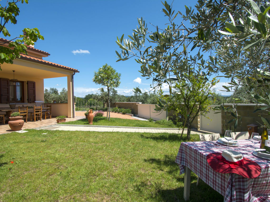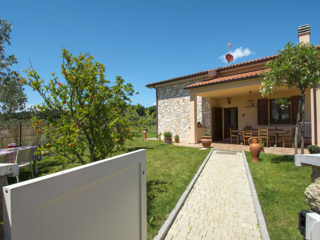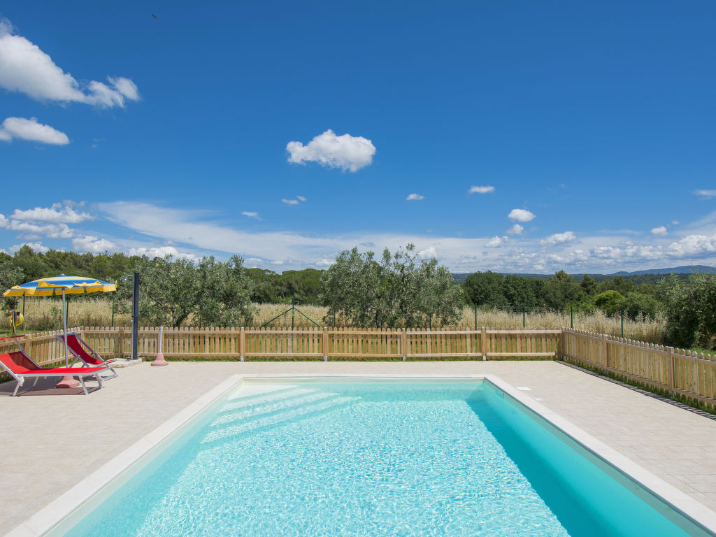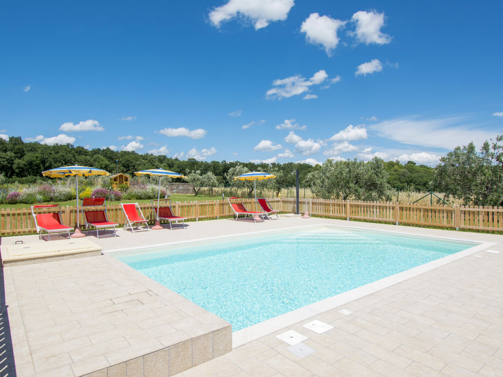 Das 2020 gebaute Ferienhaus IL MELOGRANO steht in der ländlichen Ebene, 4 km von San Pietro in Palazzi und 8,5 km von Riparbella entfernt. Nächster Supermarkt 4 km, Restaurant 1,5 km. Die Sandstrände von Marina di Cecina sind 6,5 km entfernt. Herrlicher Panoramablick. Um das Haus ca. 4000 m² großes, umzäuntes Gartengrundstück mit Wiese, Rasen, Olivenbäumen und gekiester Fläche. Kinderspielplatz mit Holzhäuschen. Der Gemüsegarten des Besitzers steht den Gästen offen (wöchtentliche Grundstückspflege). Auf einem benachbarten Bauernhof können die Gäste Milch und Eier kaufen. Zufahrt ca. 100 m über Schotterweg. 2-3 Parkplätze auf dem Grundstück. Auf der Vorderseite des Hauses ca. 15 m² große, überdachte Terrasse mit Holzbank und -tisch, im Garten hinter dem Haus möblierter Freisitz. Transportabler Grill. Wenige Meter hinter dem Haus liegt der schöne Pool (ca. 8 x 5 m, max. Tiefe 1,50 m, 27.03.-06.11.) mit gefliester Terrasse, Außendusche, 8 Sonnenliegen und 4 Sonnenschirmen. Das Ferienhaus ist ansprechend und geschmackvoll eingerichtet. Flieseböden. Waschmaschine. 2x Sat-TV. Internetzugang (WLAN, inklusive). Gas-Zentralheizung. Hinweis: Rauchen ist im Haus nicht gestattet. EXTRA: Eine Sonnenliege, ein Liegestuhl und ein Sonnenschirm in der Badeanstalt Bagno Gabbiano in Marina di Cecina, 8,5 km entfernt, sind für die Kunden reserviert und im Preis inkludiert.